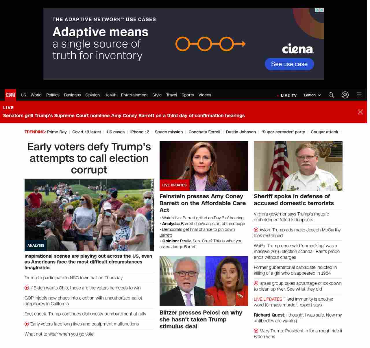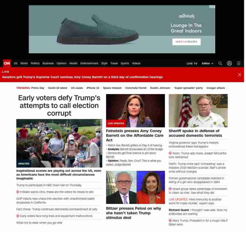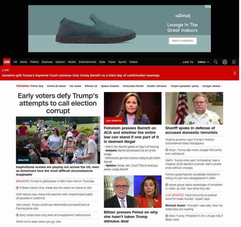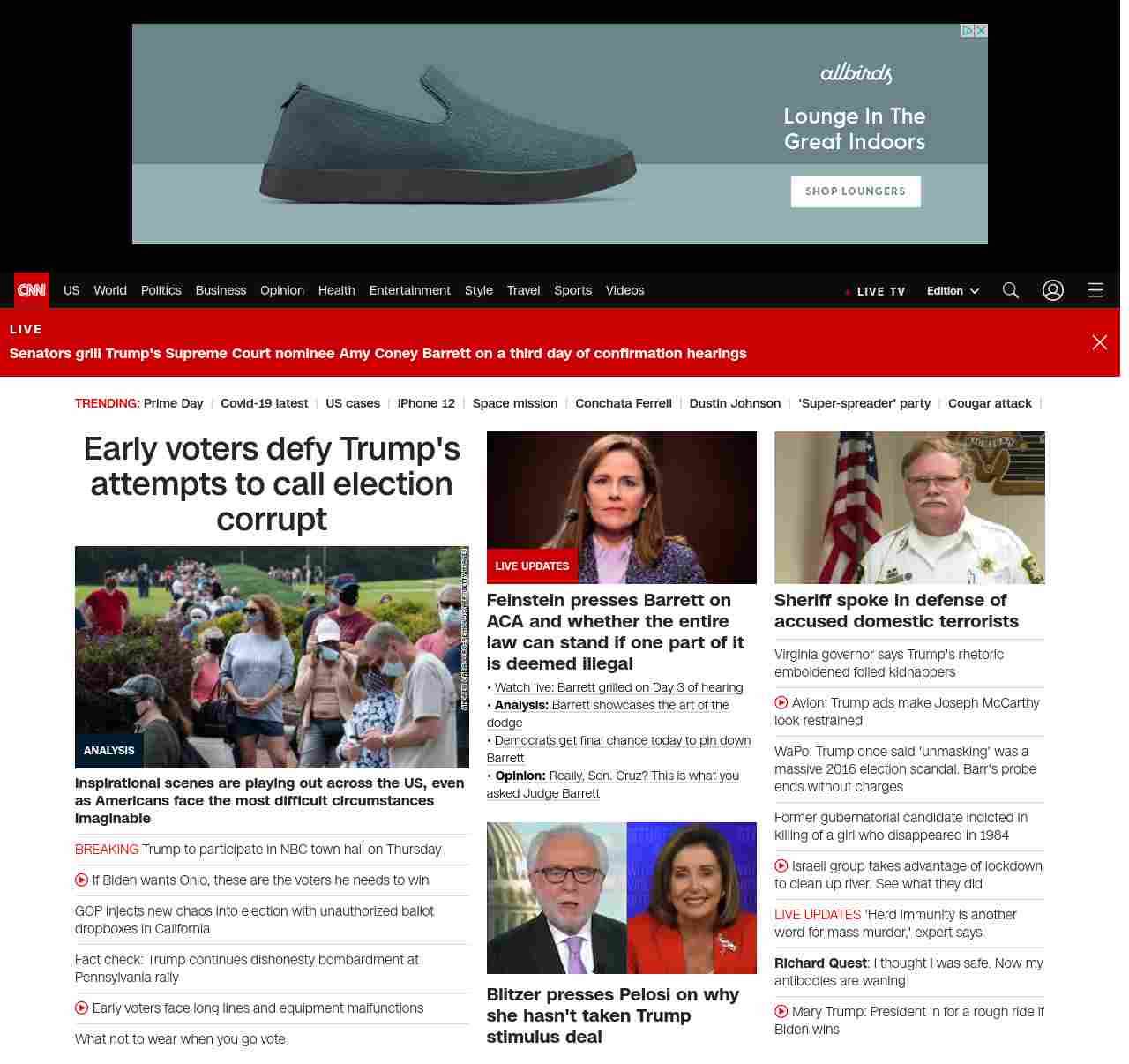 CNN1: FOXVCNN=|Early voters defy Trump’s attempts to call election corrupt| ((lubuntu at wor3))