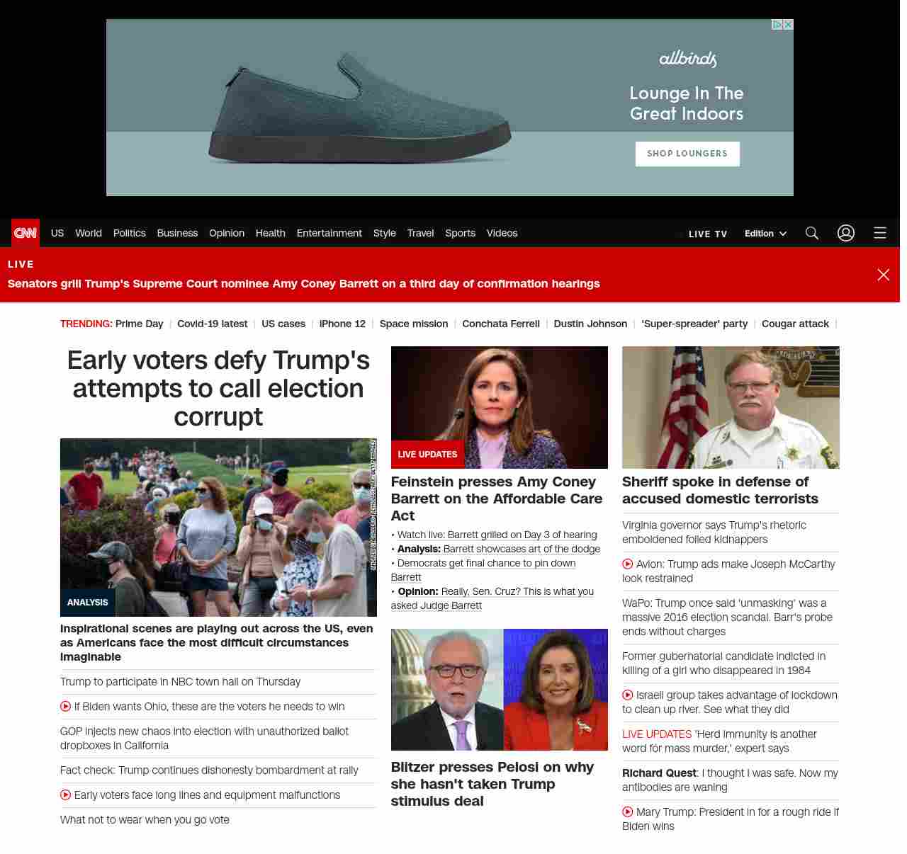 || screaming-banner-text banner-text-size–char-38″ data-analytics=”_list-hierarchical-xs_hyperlink_”> Trump’s pick is back in the hot seat ||=”banner-text screaming-banner-text banner-text-size–char-47″ data-analytics=”_list-hierarchical-xs_article_”>Early voters defy Trump’s attempts to call election corrupt