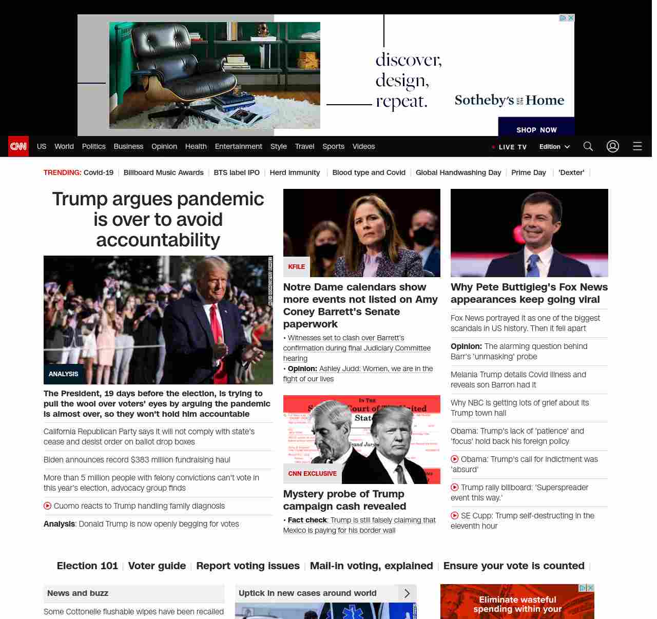 || screaming-banner-text banner-text-size–char-47″ data-analytics=”_list-hierarchical-xs_article_”> Trump’s dishonesty on Covid hangs over his reelection bid ||The President, 19 days before the election, is trying to pull the wool over voters’ eyes by arguing the pandemic is almost over, so they won’t hold him accountable