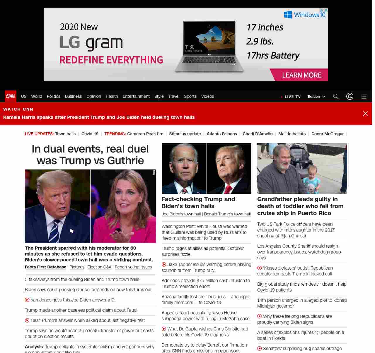 || screaming-banner-text banner-text-size–char-47″ data-analytics=”_list-hierarchical-xs_article_”> In dual events, real duel was Trump vs Guthrie ||The President sparred with his moderator for 60 minutes as she refused to let him evade questions. Biden’s slower-paced town hall was a striking contrast.
