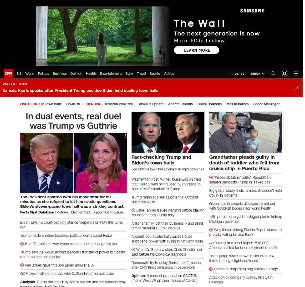 || screaming-banner-text banner-text-size–char-47″ data-analytics=”_list-hierarchical-xs_article_”> In dual events, real duel was Trump vs Guthrie ||The President sparred with his moderator for 60 minutes as she refused to let him evade questions. Biden’s slower-paced town hall was a striking contrast.