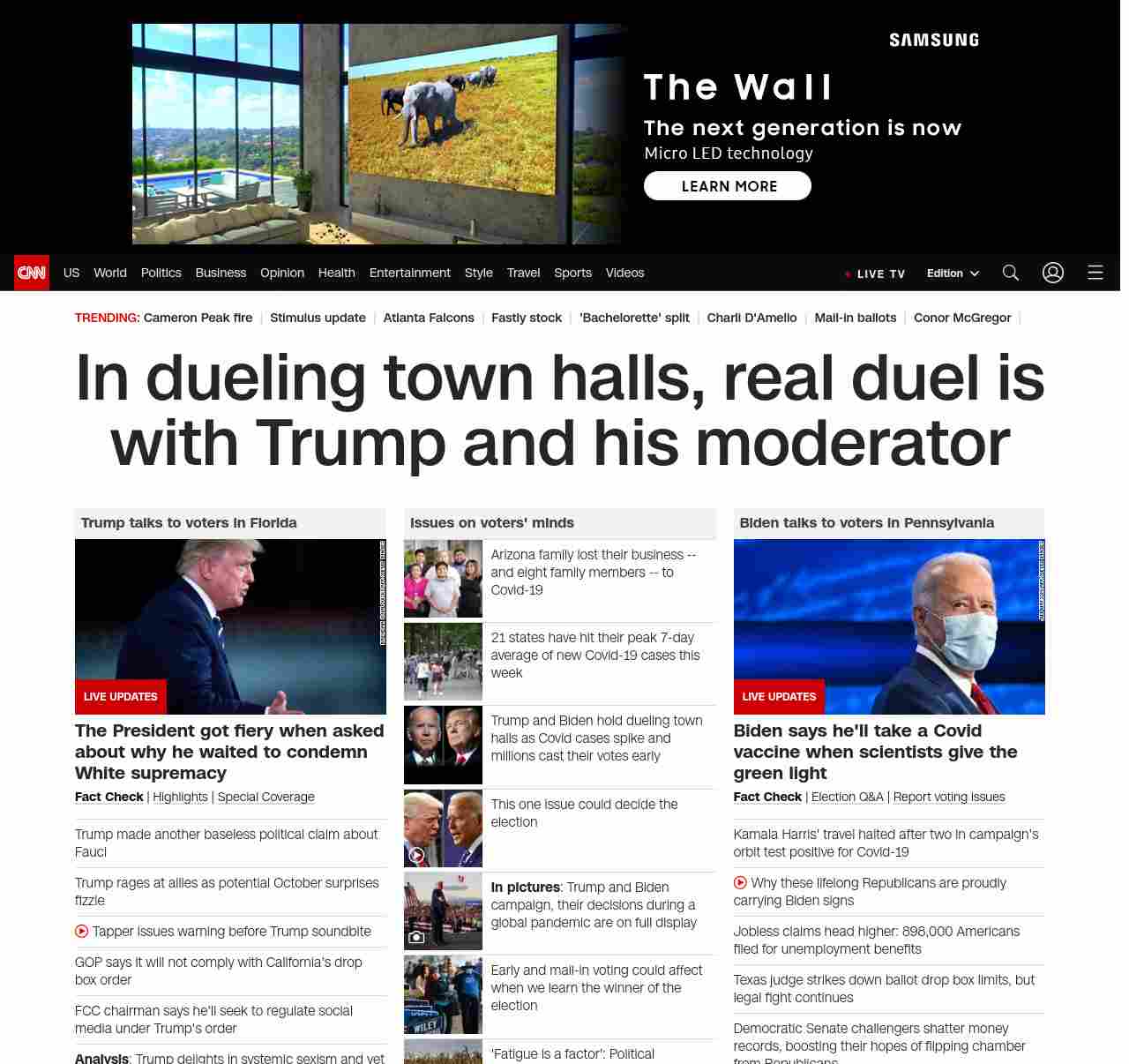 || banner-text–natural”> Dueling Trump and Biden town halls focus on coronavirus ||”},”chartbeat”:{“sections”:””},”branding_content_page”:”default”,”branding_content_zone”:[“default”],”branding_content_container”:[“default”,”cnn-money-markets”,”space-and-science”],”branding_content_card”:[“”]} , edition: “domestic” , sourceId: ”
