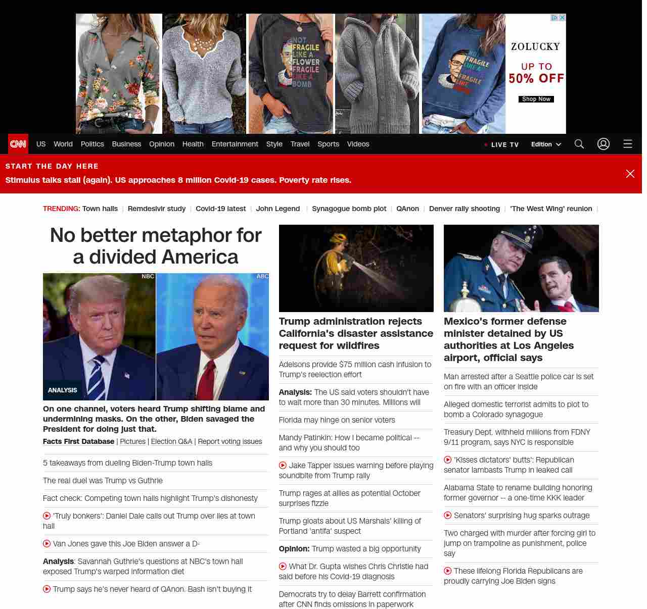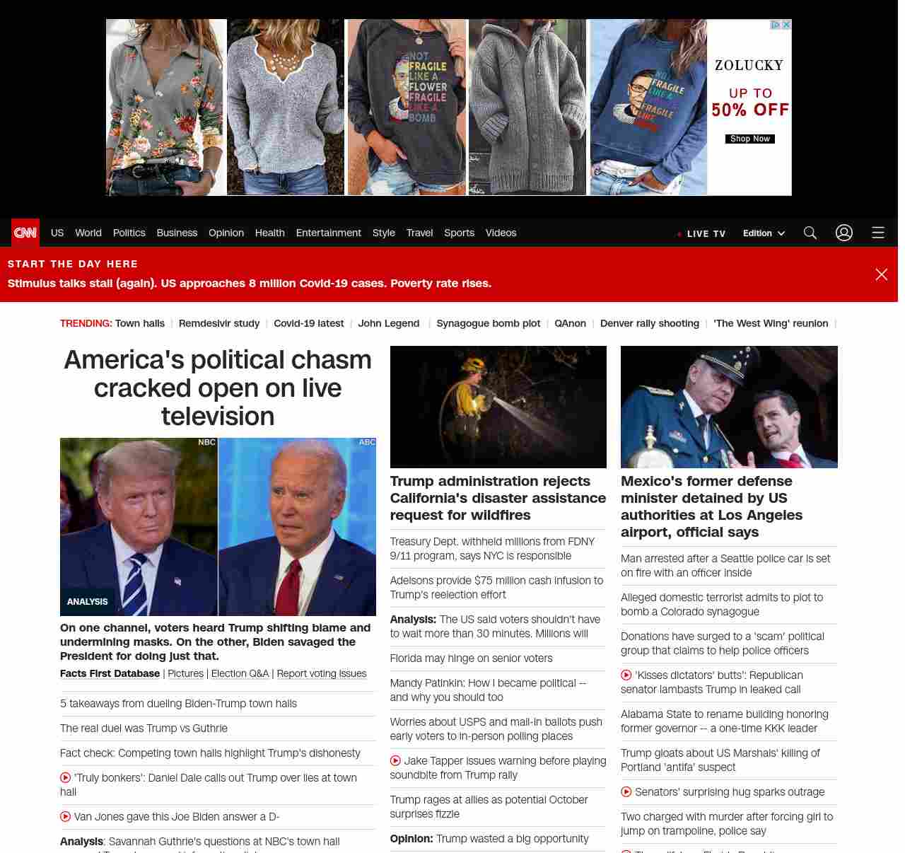 FN: [[ONE IS NOT LIKE THE OTHER]] Biggest takeaways from dueling town halls; Trump faces grilling, Biden not asked about Hunter' s emails</a ((lubuntu at wor3))