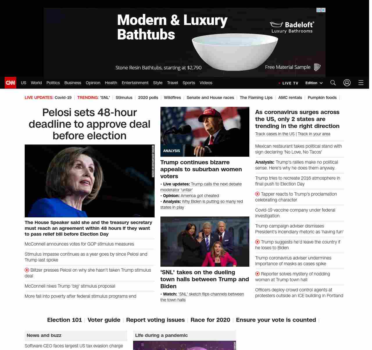 CNN1: FOXVCNN=|Pelosi sets 48-hour deadline for stimulus deal before election| ((lubuntu at wor3)) || screaming-banner-text banner-text-size–char-47″ data-analytics=”_list-hierarchical-xs_article_”> Pelosi sets 48-hour deadline for stimulus deal before election ||Pelosi sets 48-hour deadline for stimulus deal before election Share this: Share on X (Opens in new window) X Share on Facebook (Opens in new window) Facebook Like Loading... Related