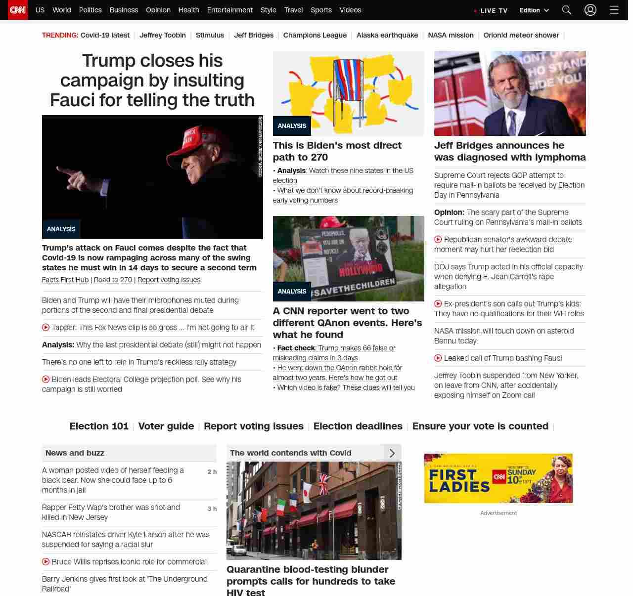 CNN1: FOXVCNN=|Trump closes his campaign by insulting Fauci for telling the truth| ((lubuntu at wor3))