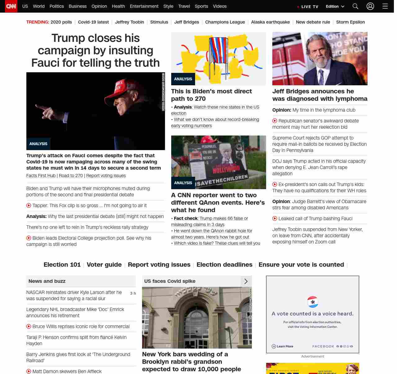 CNN1: FOXVCNN=|Trump closes his campaign by insulting Fauci for telling the truth| ((lubuntu at wor3))