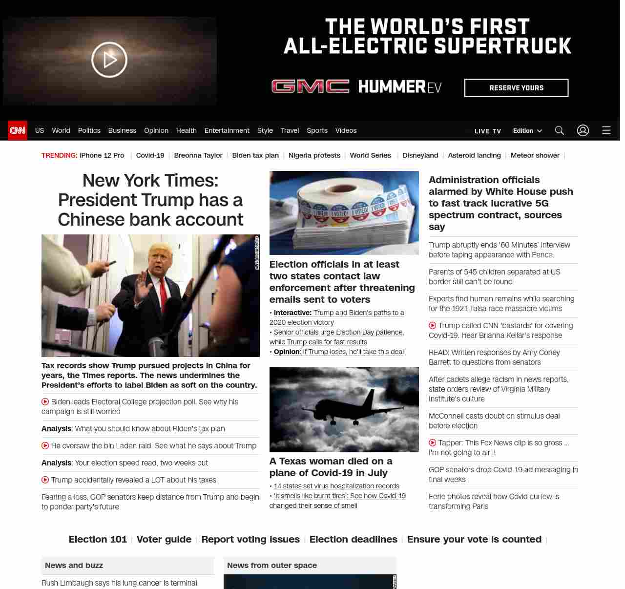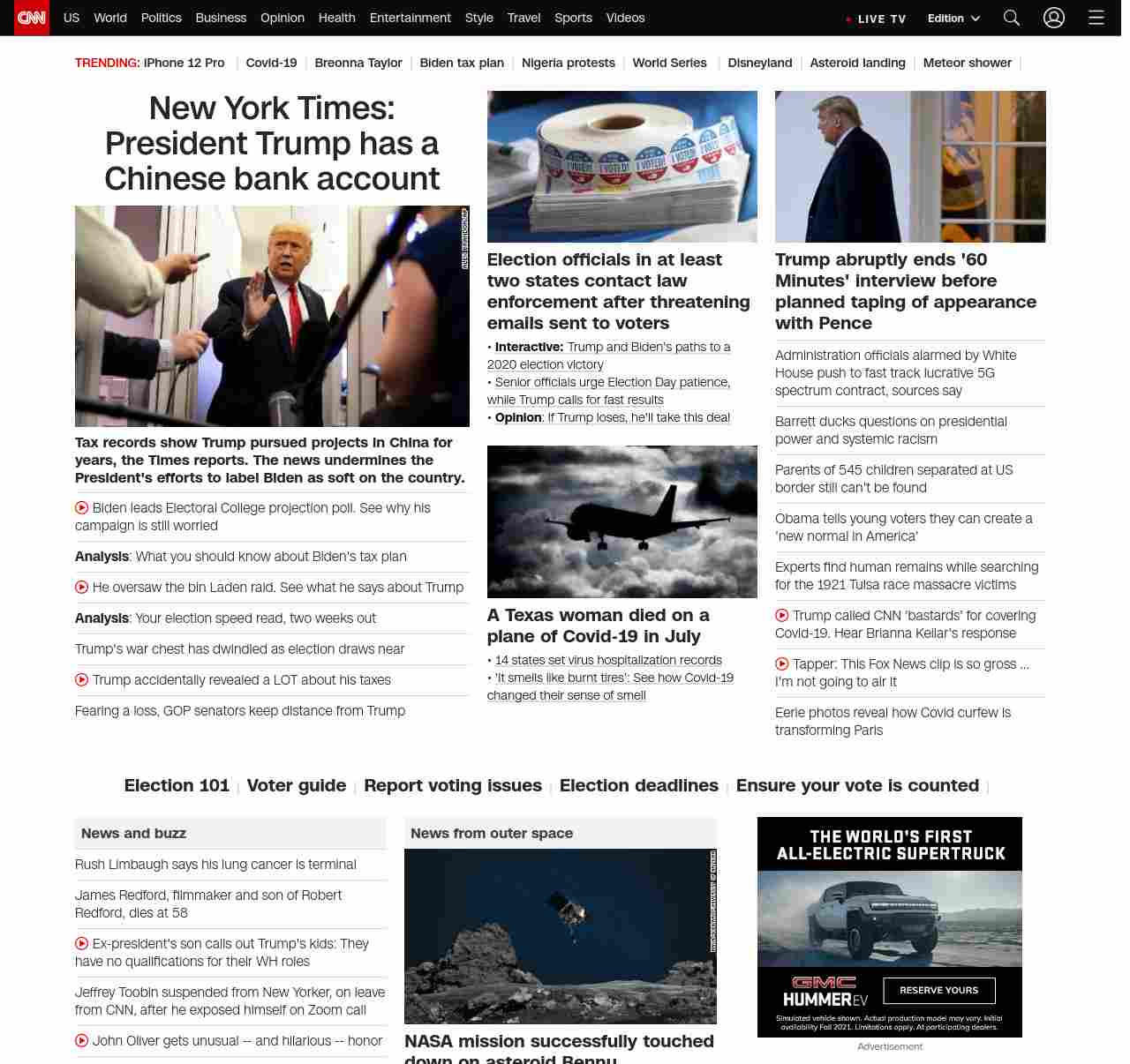 || screaming-banner-text banner-text-size–char-47″ data-analytics=”_list-hierarchical-xs_article_”> New York Times: President Trump has a Chinese bank account ||Tax records show Trump pursued projects in China for years, the Times reports. The news undermines the President’s efforts to label Biden as soft on the country.