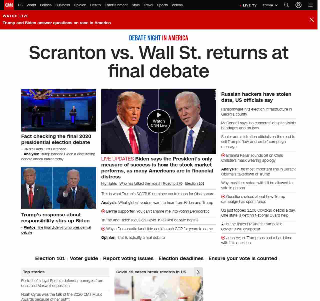CNN1: FOXVCNN=|Scranton vs. Wall St. returns at final debate| ((lubuntu at wor3))