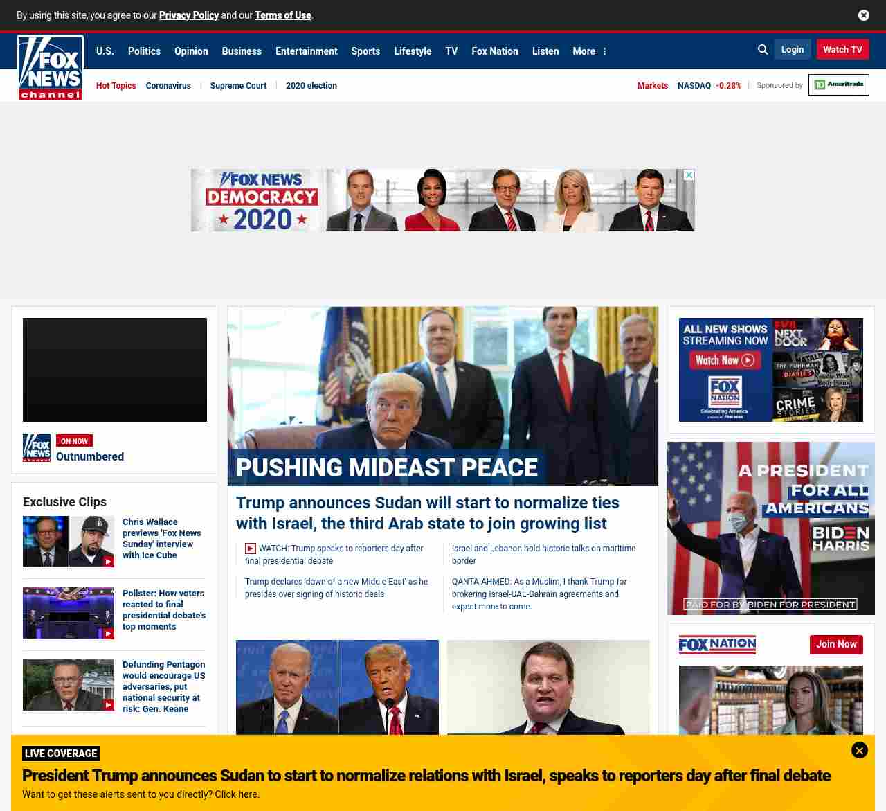 FN: [[PUSHING MIDEAST PEACE:]] Trump announces Sudan will start to normalize ties with Israel, the third Arab state to join growing list</a ((lubuntu at wor3))
