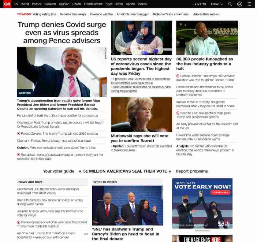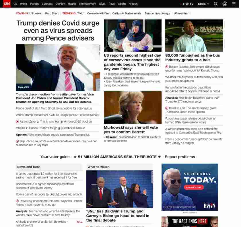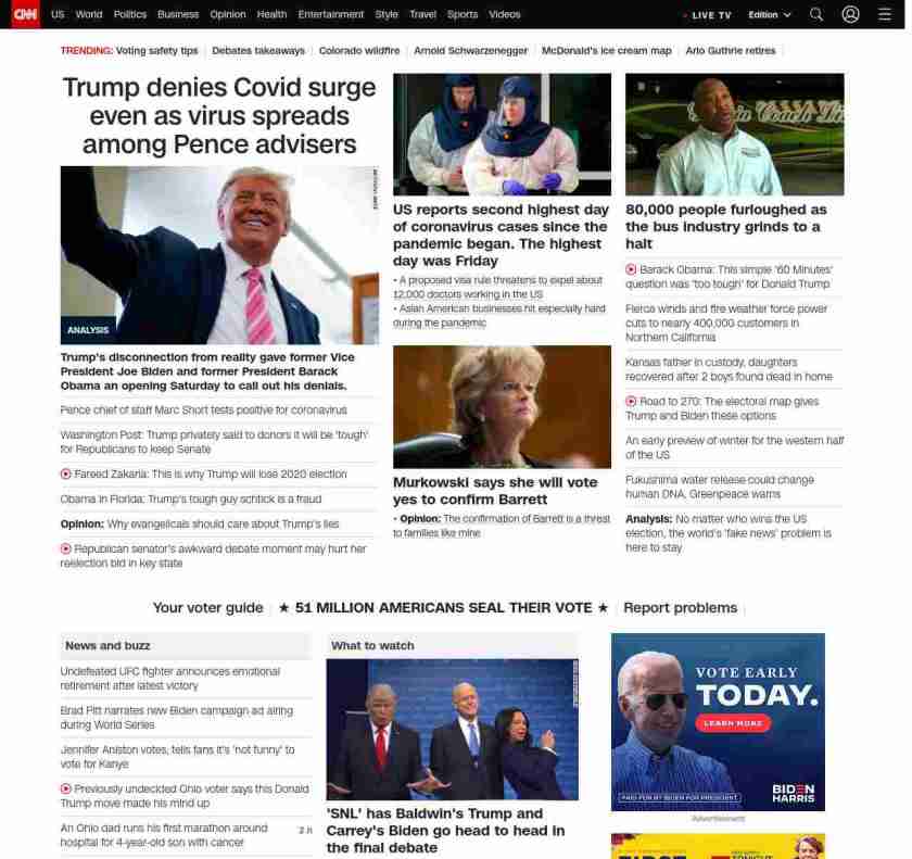|| screaming-banner-text banner-text-size–char-47″ data-analytics=”_list-hierarchical-xs_article_”> Trump denies Covid surge even as virus spreads among Pence advisers ||”},”chartbeat”:{“sections”:””},”branding_content_page”:”presidential-debate”,”branding_content_zone”:[“default”],”branding_content_container”:[“default”,”cnn-money-markets”,”space-and-science”,”cnn-heroes-hp”],”branding_content_card”:[“”]} , edition: “domestic” , sourceId: ”
