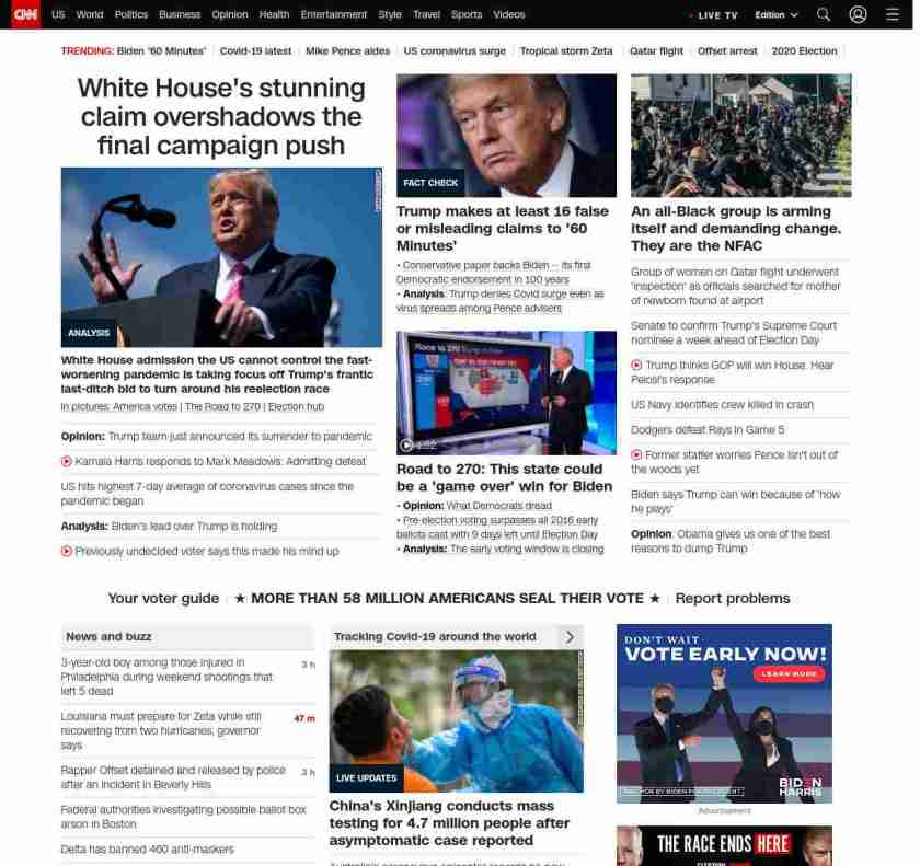 || screaming-banner-text banner-text-size–char-47″ data-analytics=”_list-hierarchical-xs_article_”> White House’s stunning claim overshadows the final campaign push ||White House admission the US cannot control the fast-worsening pandemic is taking focus off Trump’s frantic last-ditch bid to turn around his reelection race