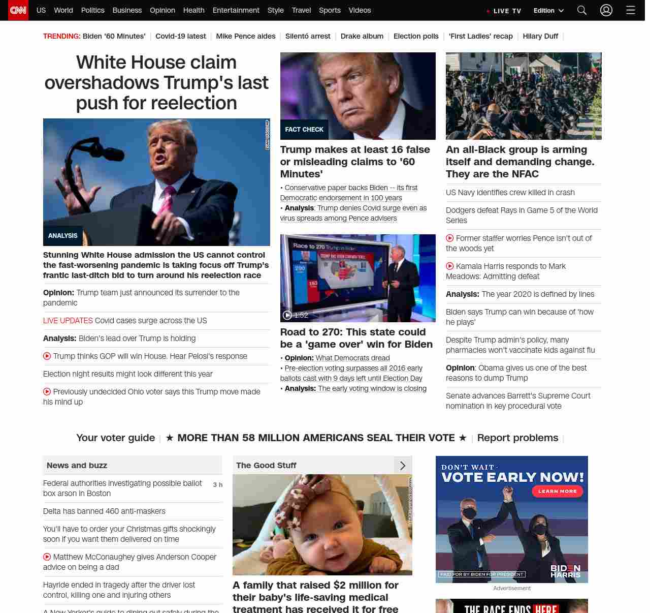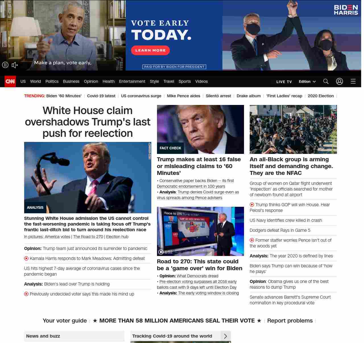 CNN1: FOXVCNN=|White House claim overshadows Trump’s last push for reelection| ((lubuntu at wor3))