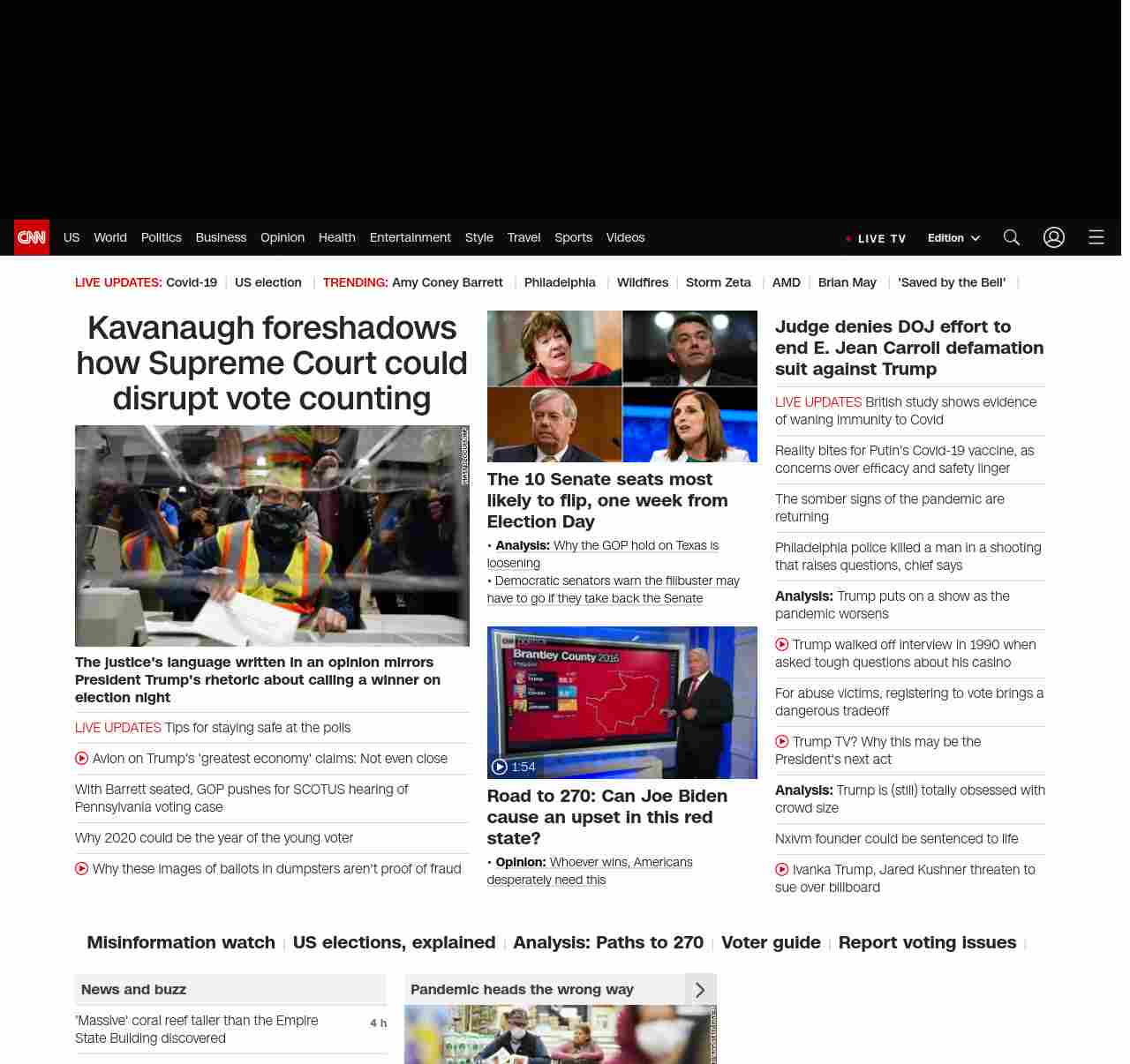 || screaming-banner-text banner-text-size–char-47″ data-analytics=”_list-hierarchical-xs_article_”> Kavanaugh foreshadows how Supreme Court could disrupt vote counting ||The justice’s language written in an opinion mirrors President Trump’s rhetoric about calling a winner on election night