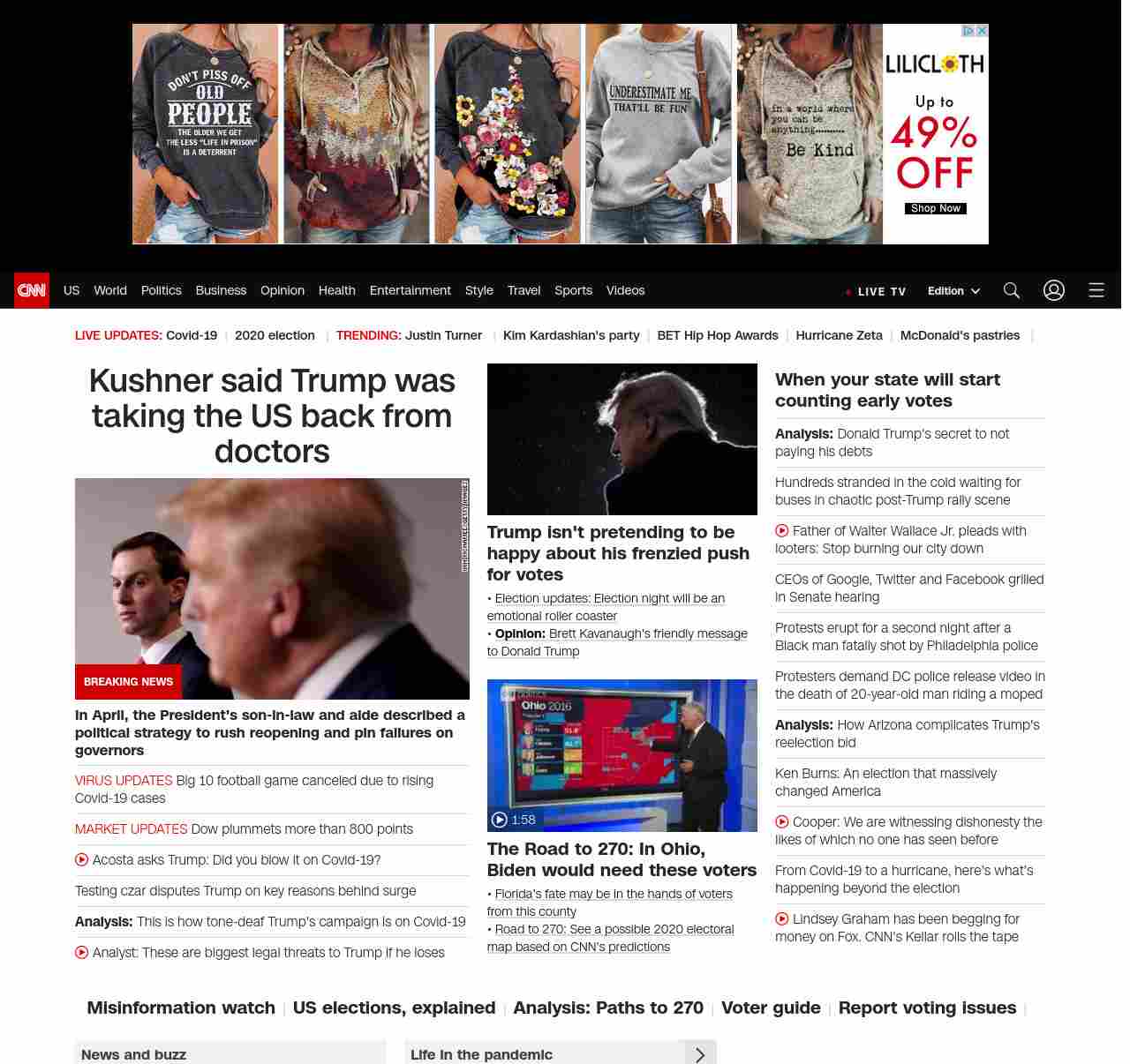 CNN1: FOXVCNN=|Kushner said Trump was taking the US back from doctors| ((lubuntu at wor3))