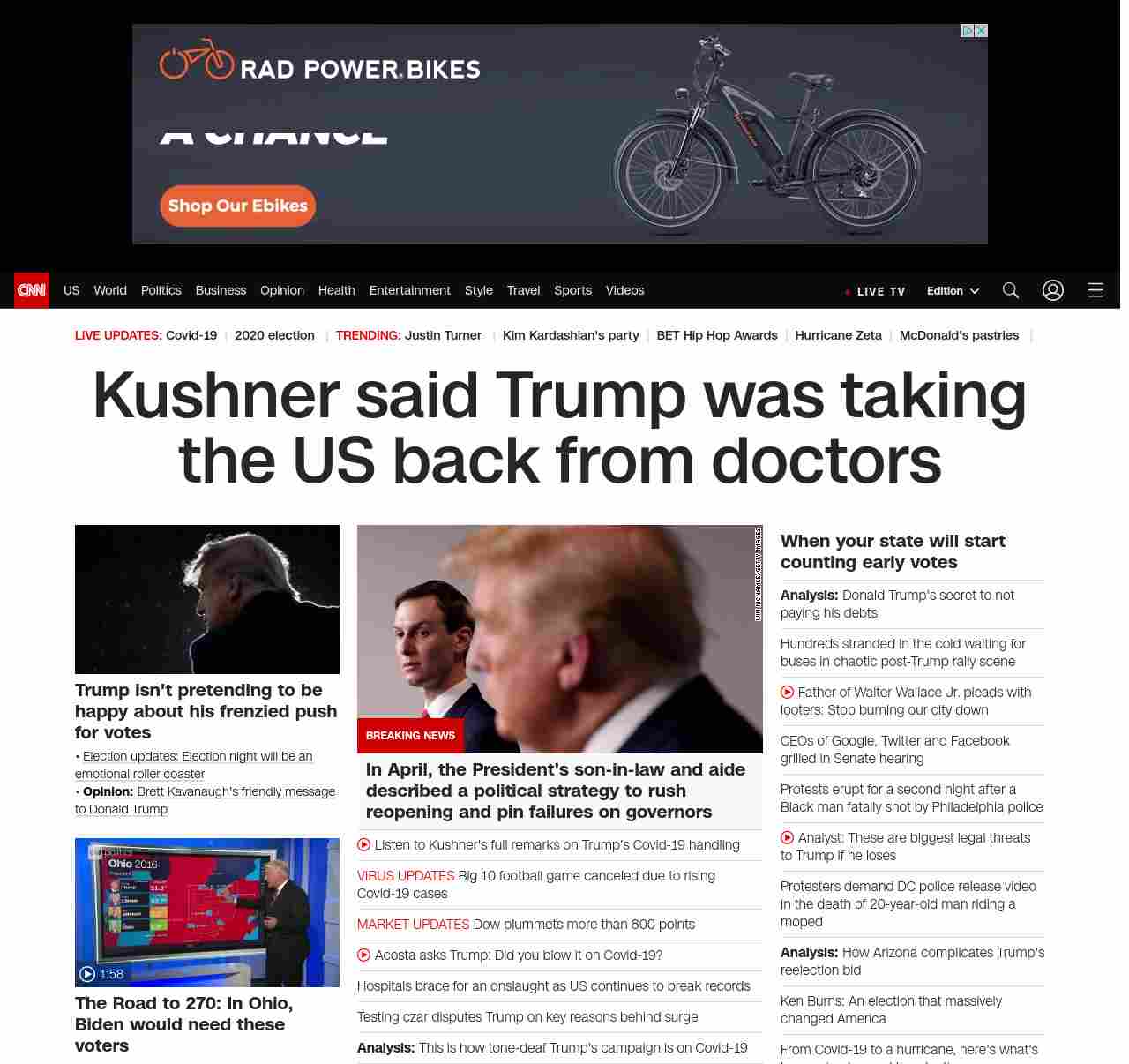 || banner-text–natural”> Kushner said Trump was taking the US back from doctors ||”},”chartbeat”:{“sections”:””},”branding_content_page”:”presidential-debate”,”branding_content_zone”:[“default”],”branding_content_container”:[“default”,”cnn-money-markets”,”space-and-science”,”cnn-heroes-hp”],”branding_content_card”:[“”]} , edition: “domestic” , sourceId: ”