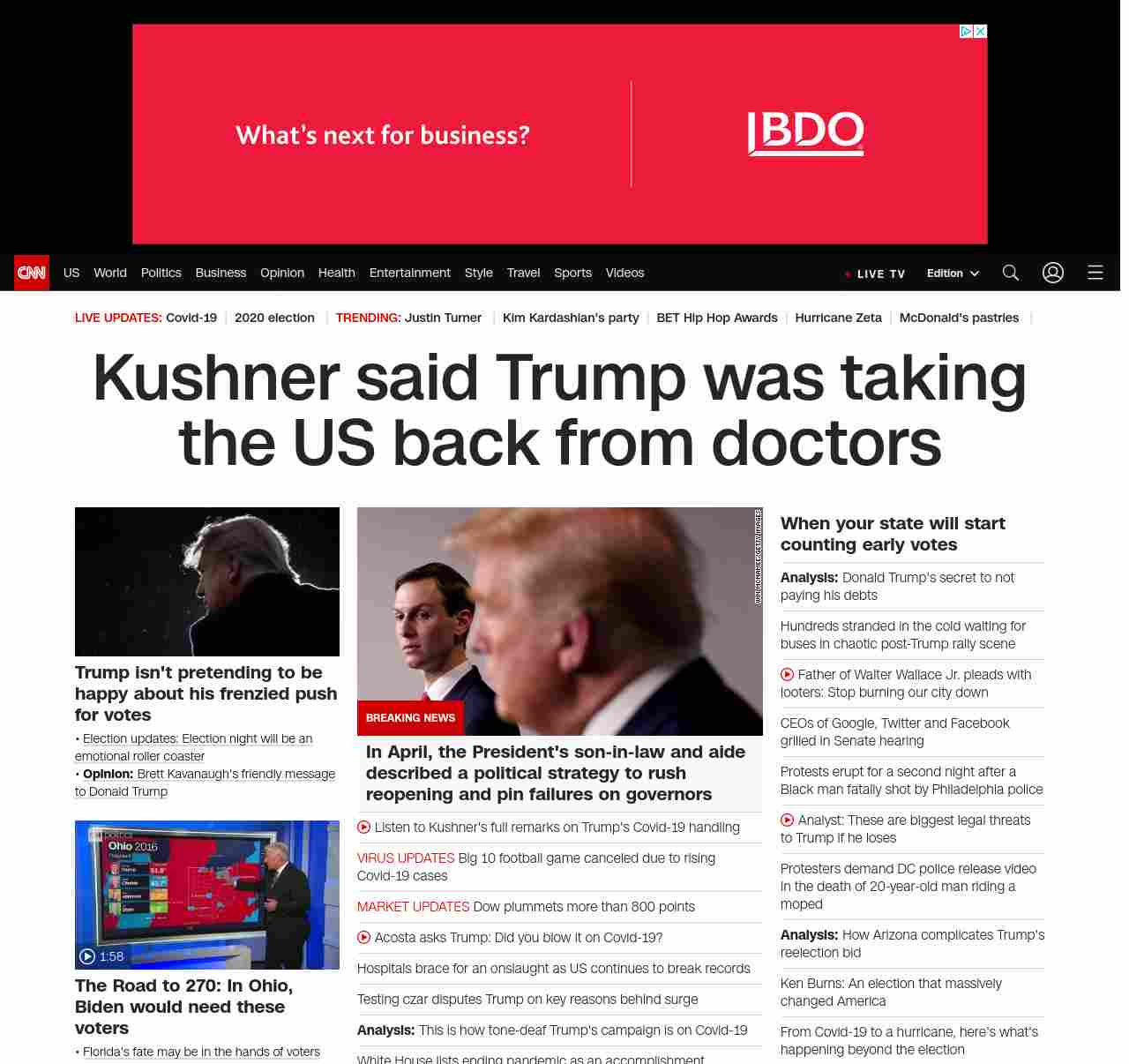 || screaming-banner-text banner-text-size–char-47″ data-analytics=”_list-hierarchical-xs_article_”> Kushner said Trump was taking the US back from doctors ||”},”chartbeat”:{“sections”:””},”branding_content_page”:”presidential-debate”,”branding_content_zone”:[“default”],”branding_content_container”:[“default”,”cnn-money-markets”,”space-and-science”,”cnn-heroes-hp”],”branding_content_card”:[“”]} , edition: “domestic” , sourceId: ”
