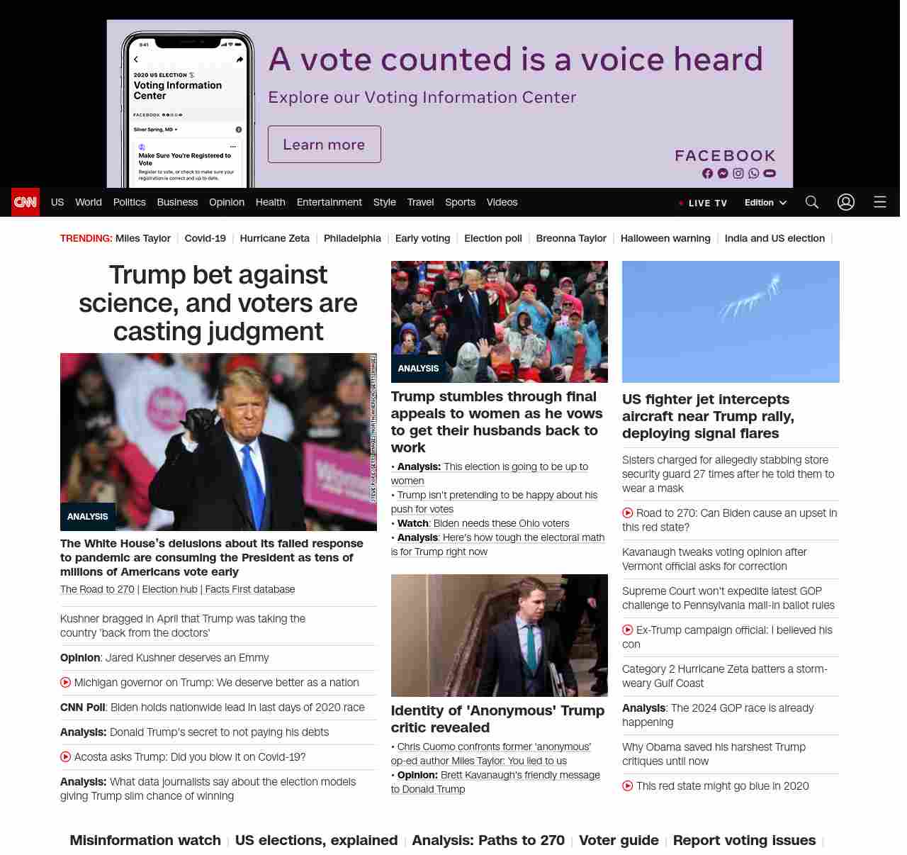 || screaming-banner-text banner-text-size–char-47″ data-analytics=”_list-hierarchical-xs_article_”> Trump bet against science, and voters are casting judgment ||America’s worsening Covid trajectory has overtaken the final days of the campaign and emphasizes how the election is a personal referendum on Trump