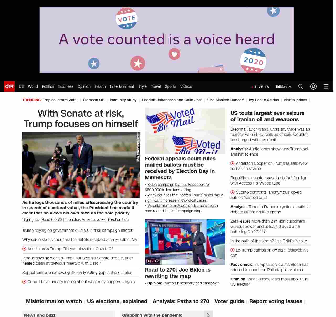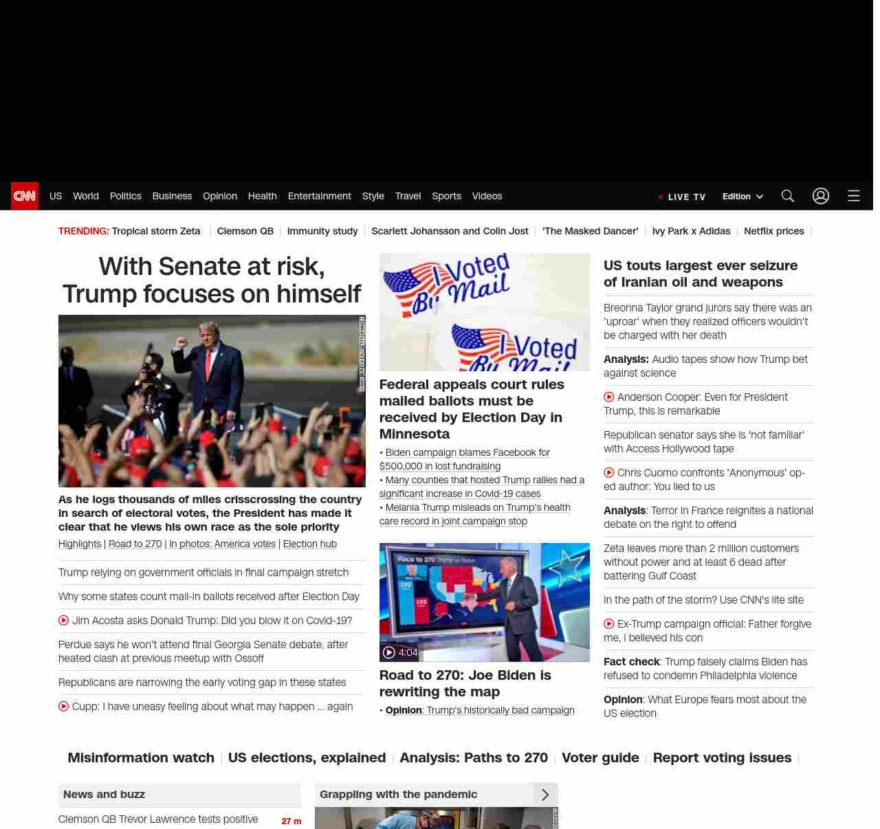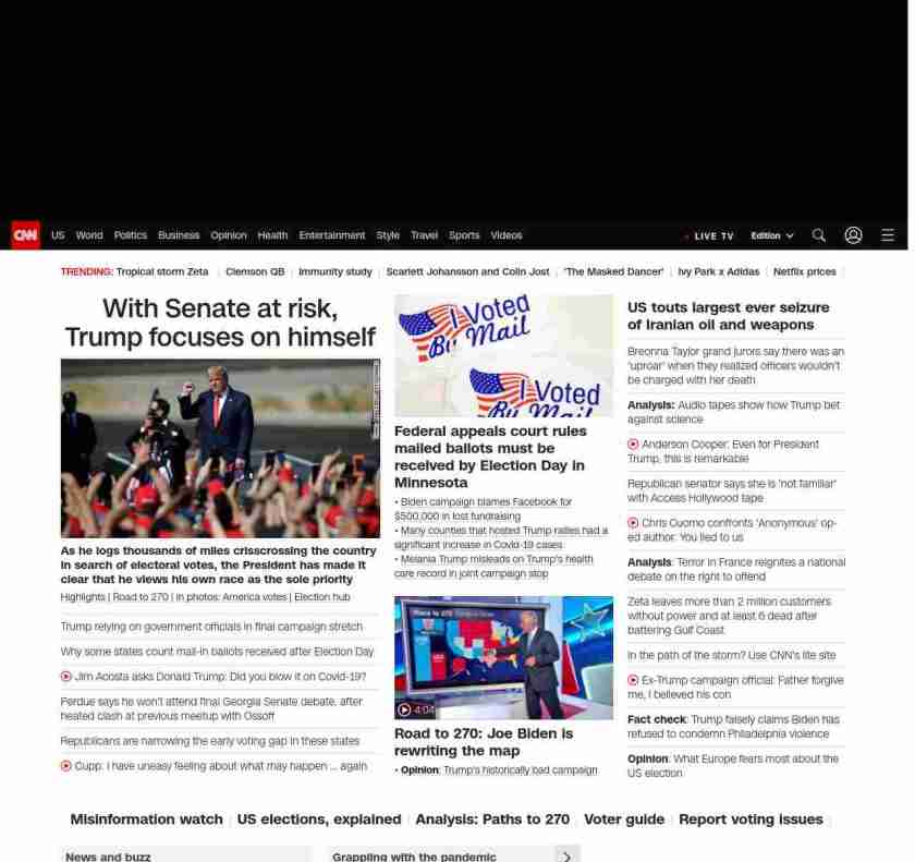 || screaming-banner-text banner-text-size–char-47″ data-analytics=”_list-hierarchical-xs_article_”> With Senate at risk, Trump focuses on himself ||As he logs thousands of miles crisscrossing the country in search of electoral votes, the President has made it clear that he views his own race as the sole priority