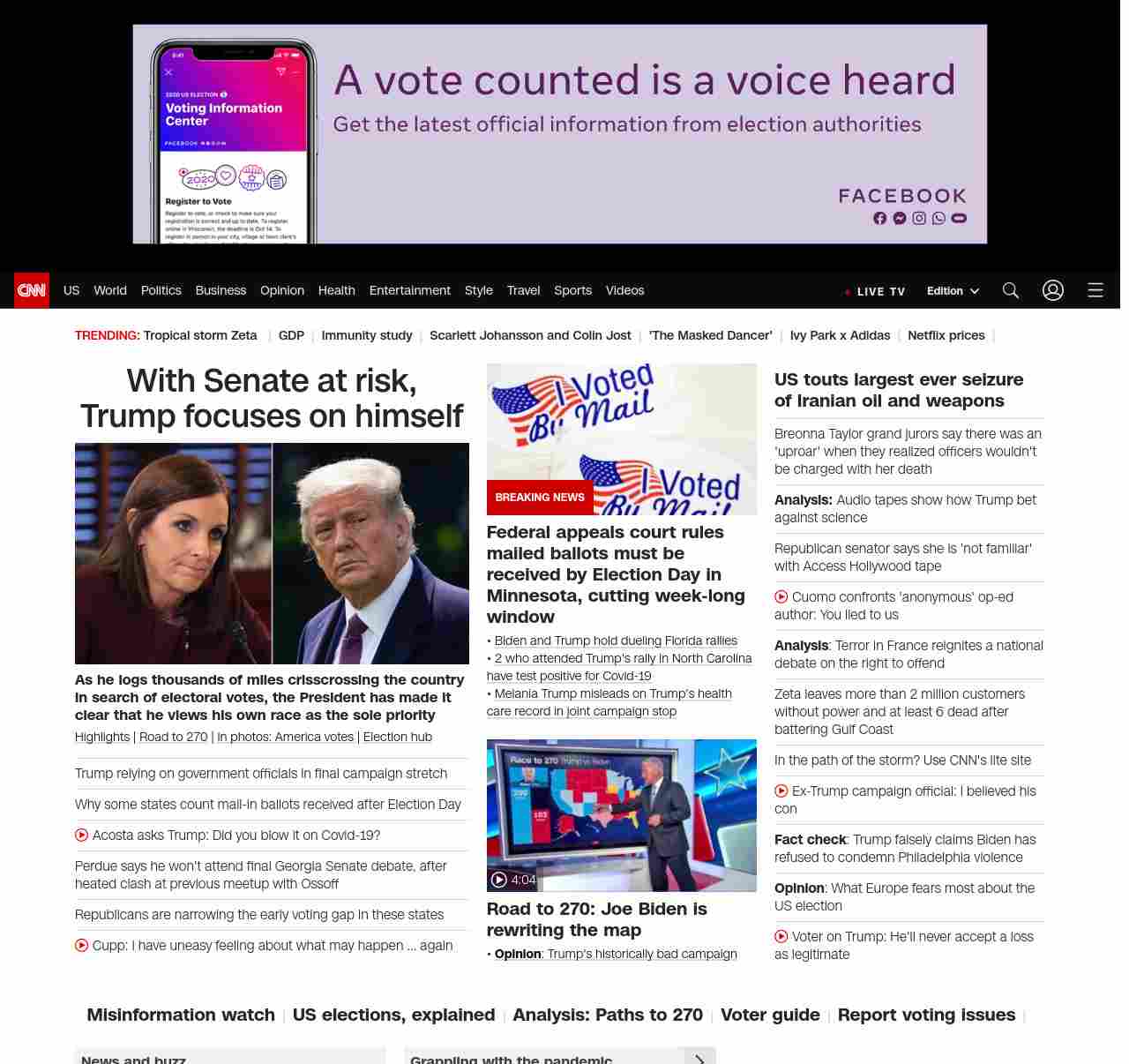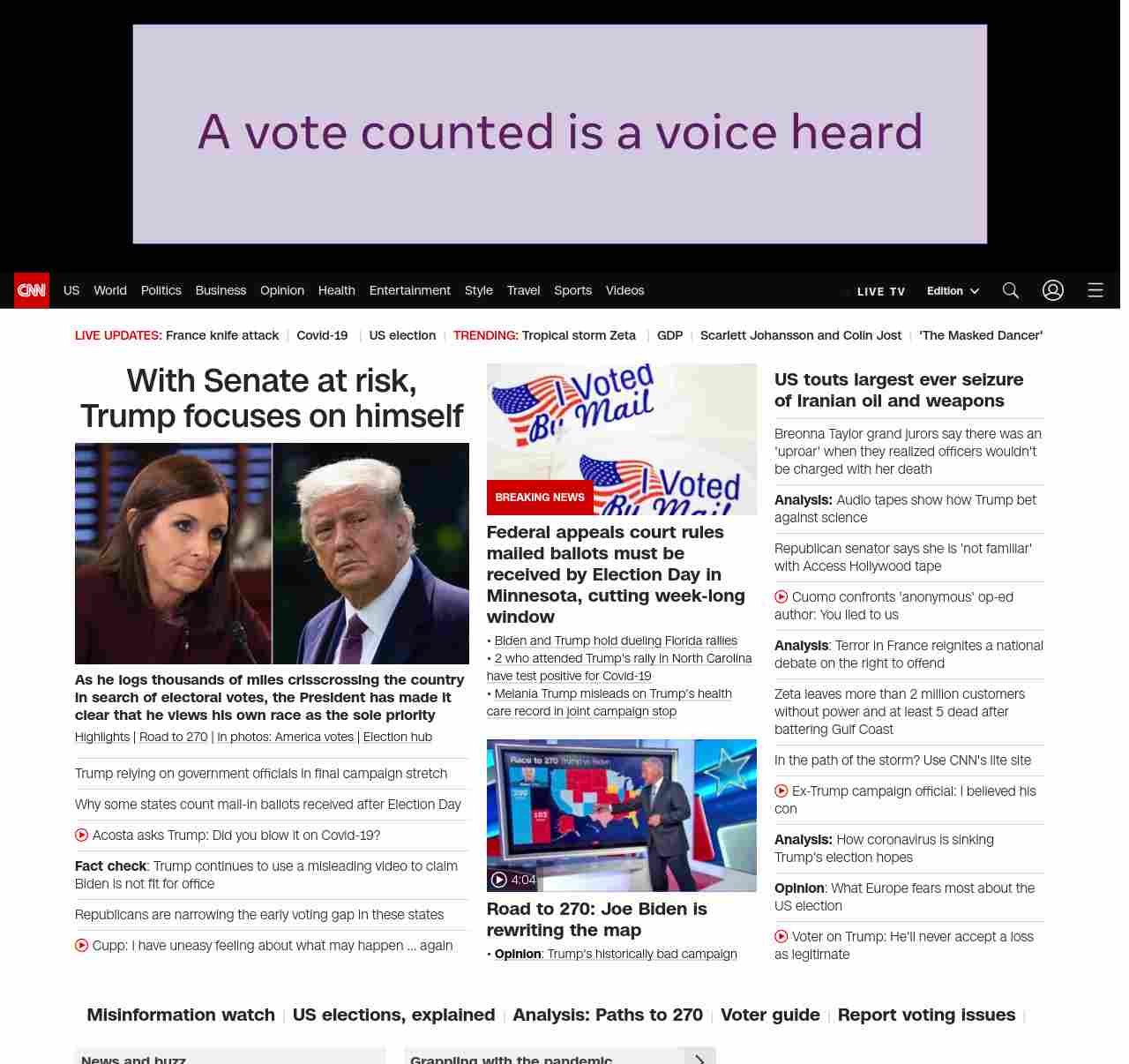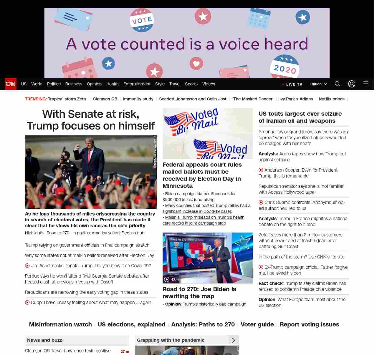 || screaming-banner-text banner-text-size–char-47″ data-analytics=”_list-hierarchical-xs_article_”> With Senate at risk, Trump focuses on himself ||As he logs thousands of miles crisscrossing the country in search of electoral votes, the President has made it clear that he views his own race as the sole priority
