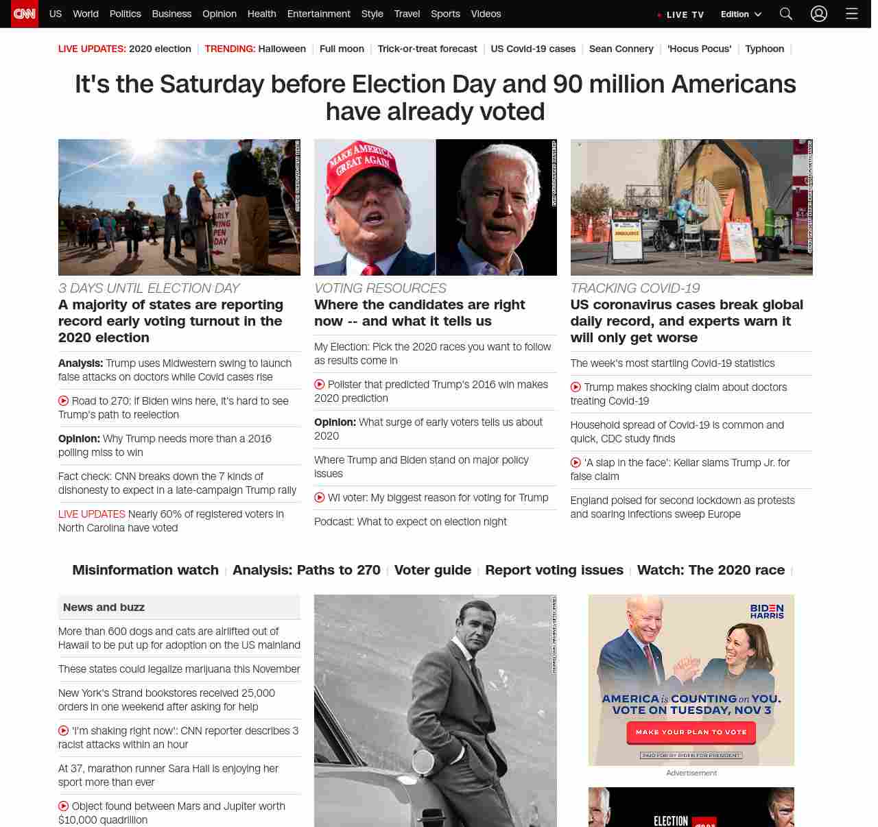 || banner-text–maximized banner-text-size–char-47″> It’s the Saturday before Election Day, 90 million Americans have cast their vote ||”},”chartbeat”:{“sections”:””},”branding_content_page”:”presidential-debate”,”branding_content_zone”:[“default”],”branding_content_container”:[“default”,”cnn-money-markets”,”space-and-science”,”cnn-heroes-hp”],”branding_content_card”:[“”]} , edition: “domestic” , sourceId: ”