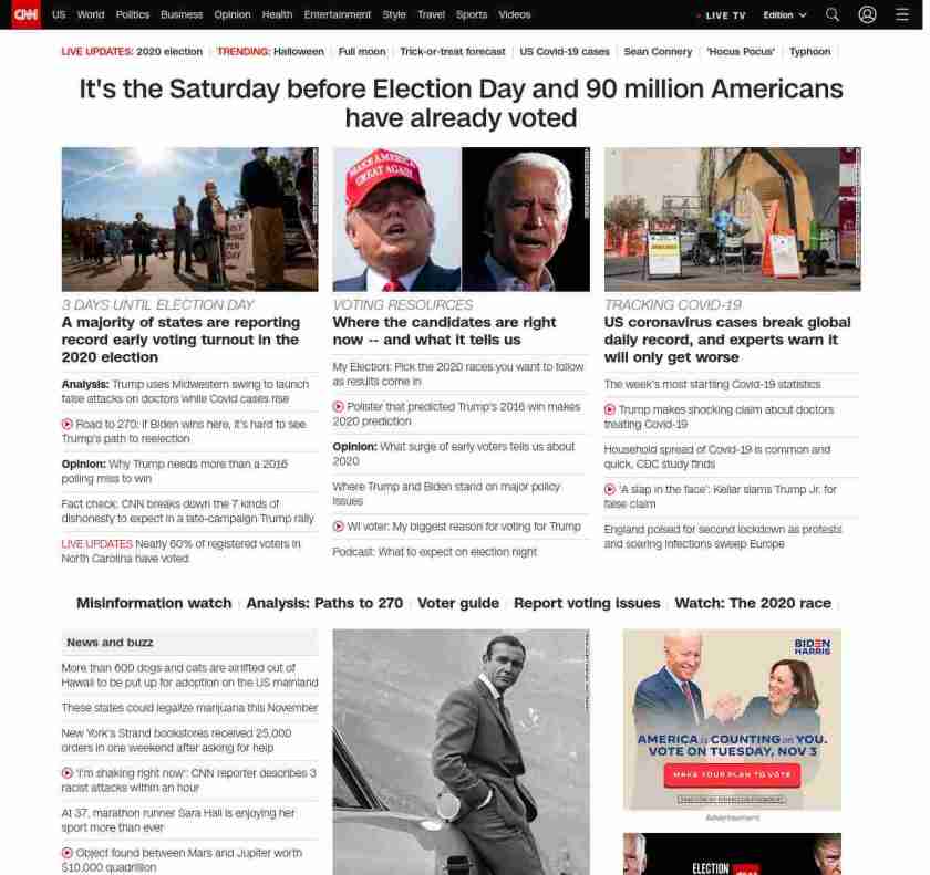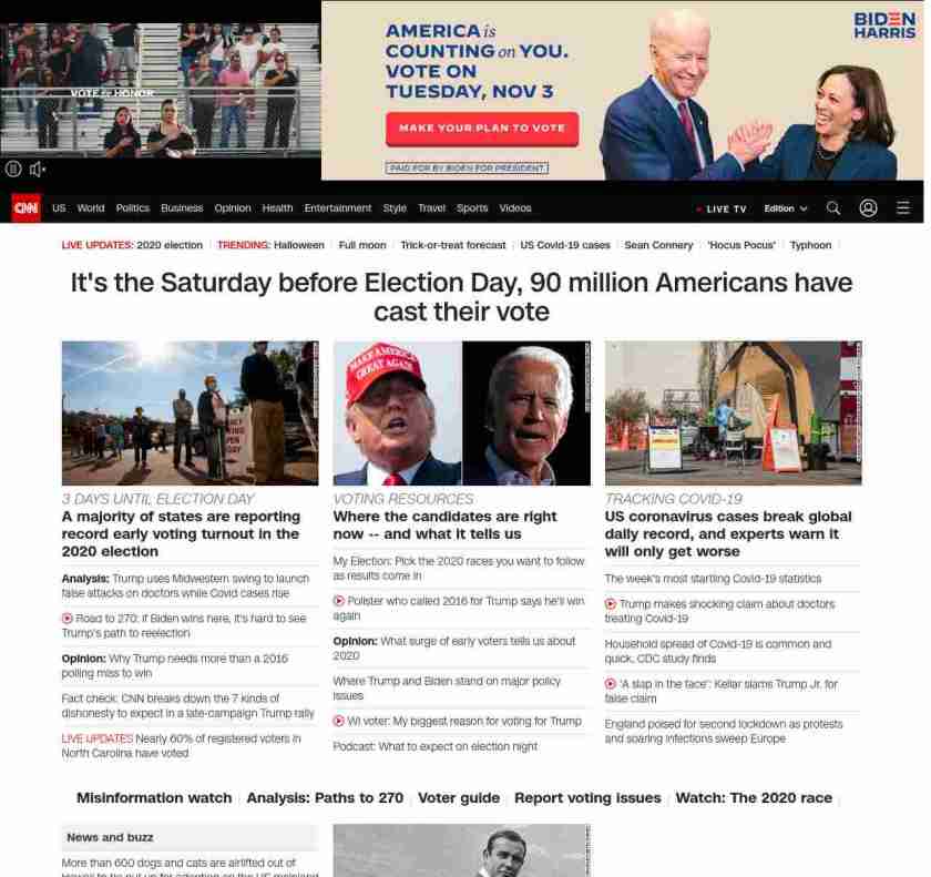 || banner-text–maximized banner-text-size–char-47″> It’s the Saturday before Election Day, 90 million Americans have voted ||”},”chartbeat”:{“sections”:””},”branding_content_page”:”presidential-debate”,”branding_content_zone”:[“default”],”branding_content_container”:[“default”,”cnn-money-markets”,”space-and-science”,”cnn-heroes-hp”],”branding_content_card”:[“”]} , edition: “domestic” , sourceId: ”