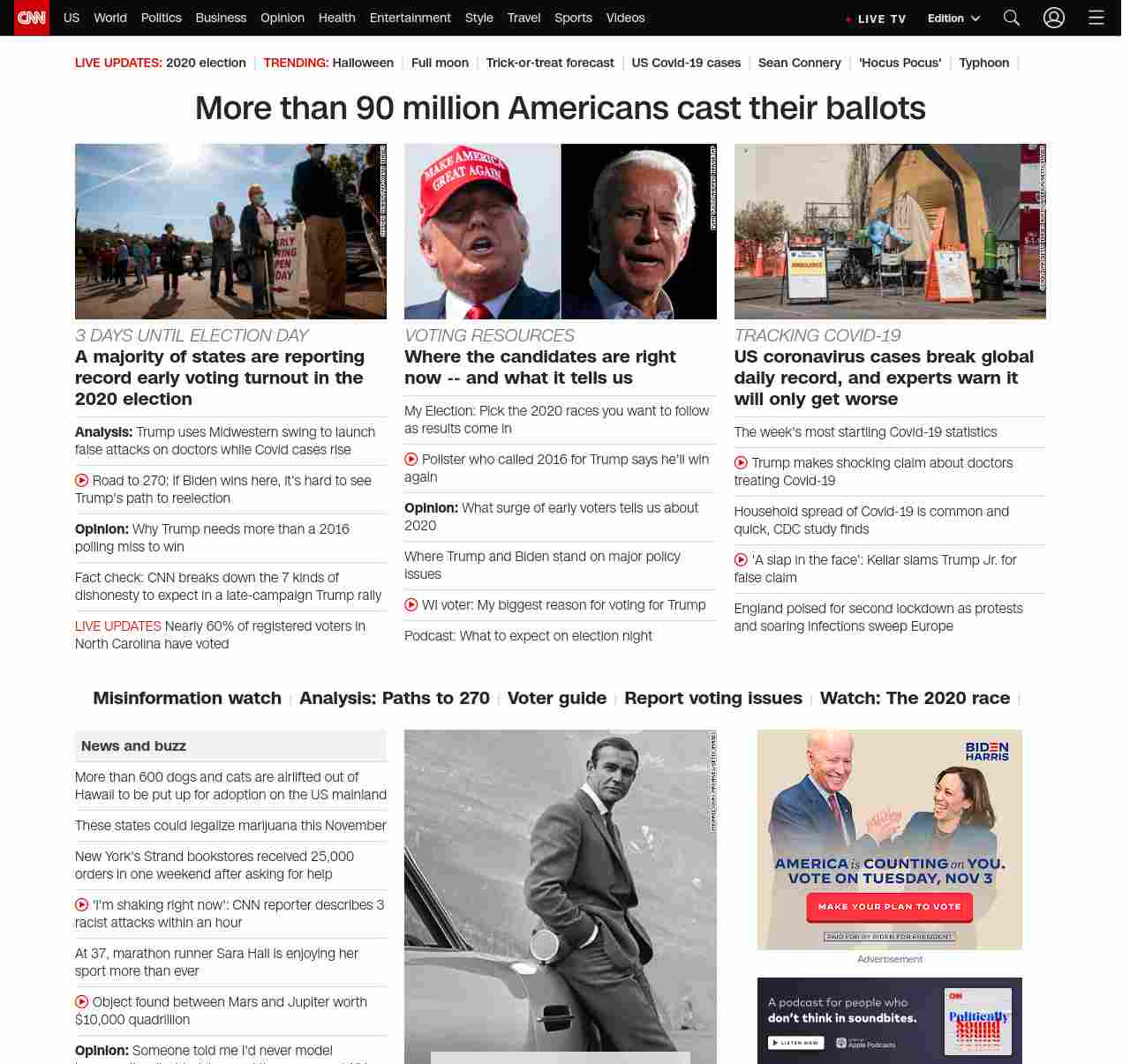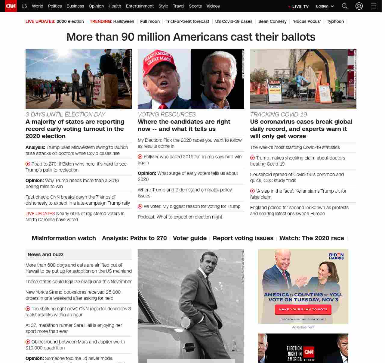 || banner-text–maximized banner-text-size–char-47″> It’s the Saturday before Election Day, 90 million Americans have voted ||”},”chartbeat”:{“sections”:””},”branding_content_page”:”presidential-debate”,”branding_content_zone”:[“default”],”branding_content_container”:[“default”,”cnn-money-markets”,”space-and-science”,”cnn-heroes-hp”],”branding_content_card”:[“”]} , edition: “domestic” , sourceId: ”