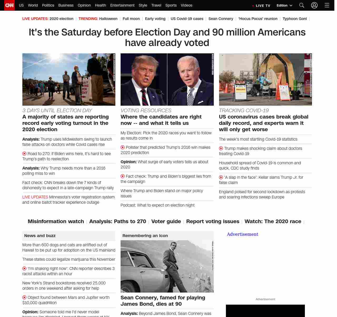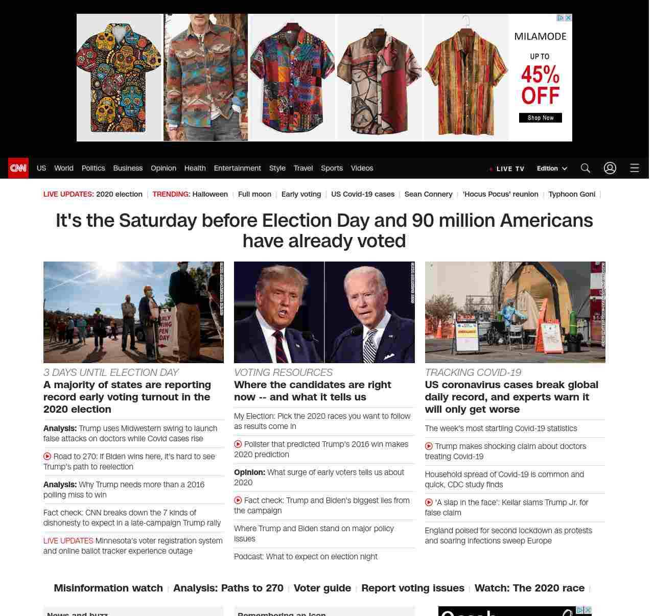 || banner-text–maximized banner-text-size–char-47″> It’s the Saturday before Election Day, 90 million Americans have cast their vote ||”},”chartbeat”:{“sections”:””},”branding_content_page”:”presidential-debate”,”branding_content_zone”:[“default”],”branding_content_container”:[“default”,”cnn-money-markets”,”space-and-science”,”cnn-heroes-hp”],”branding_content_card”:[“”]} , edition: “domestic” , sourceId: ”