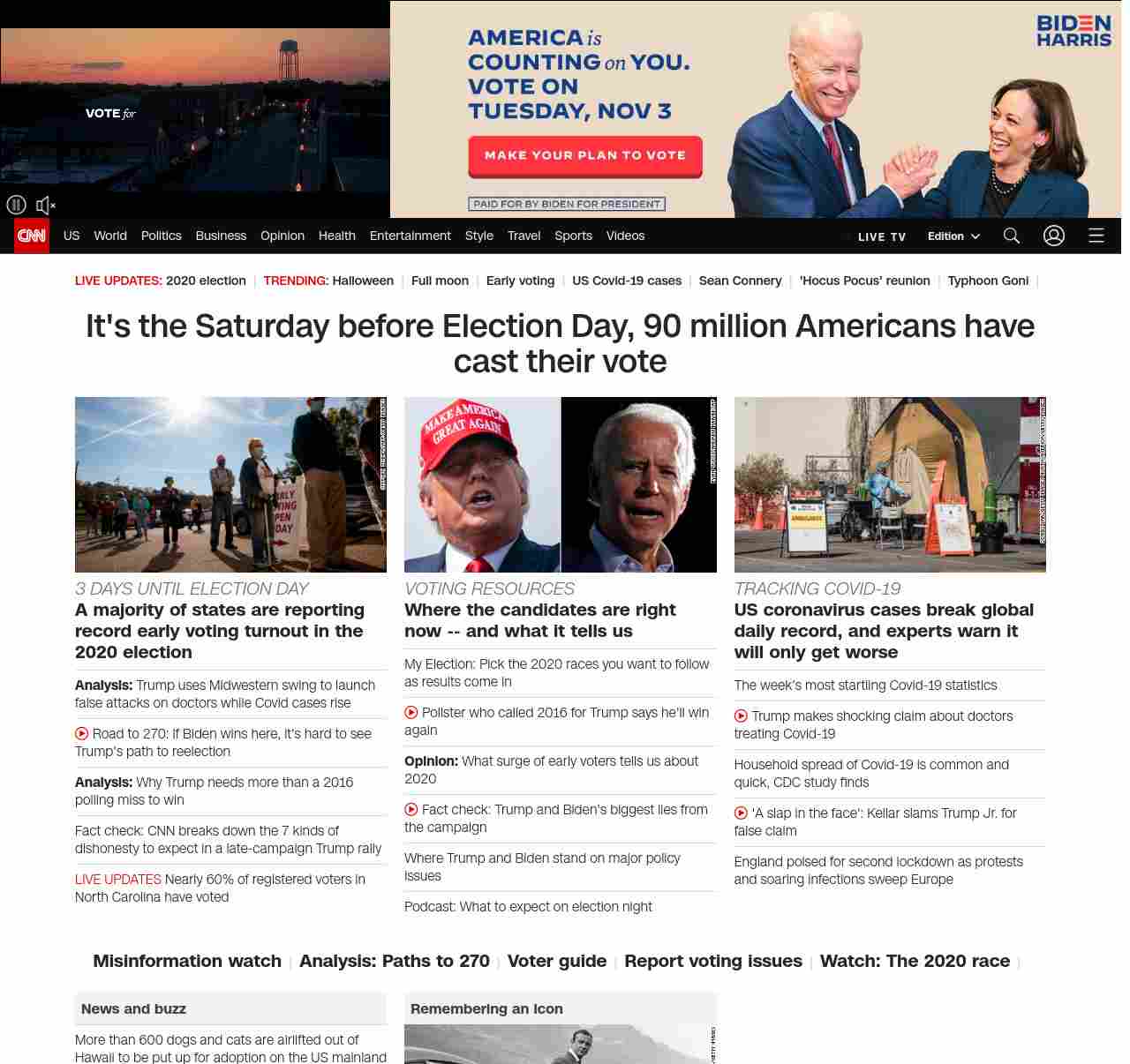 || banner-text–maximized banner-text-size–char-47″> It’s the Saturday before Election Day and 90 million Americans have already voted ||”},”chartbeat”:{“sections”:””},”branding_content_page”:”presidential-debate”,”branding_content_zone”:[“default”],”branding_content_container”:[“default”,”cnn-money-markets”,”space-and-science”,”cnn-heroes-hp”],”branding_content_card”:[“”]} , edition: “domestic” , sourceId: ”