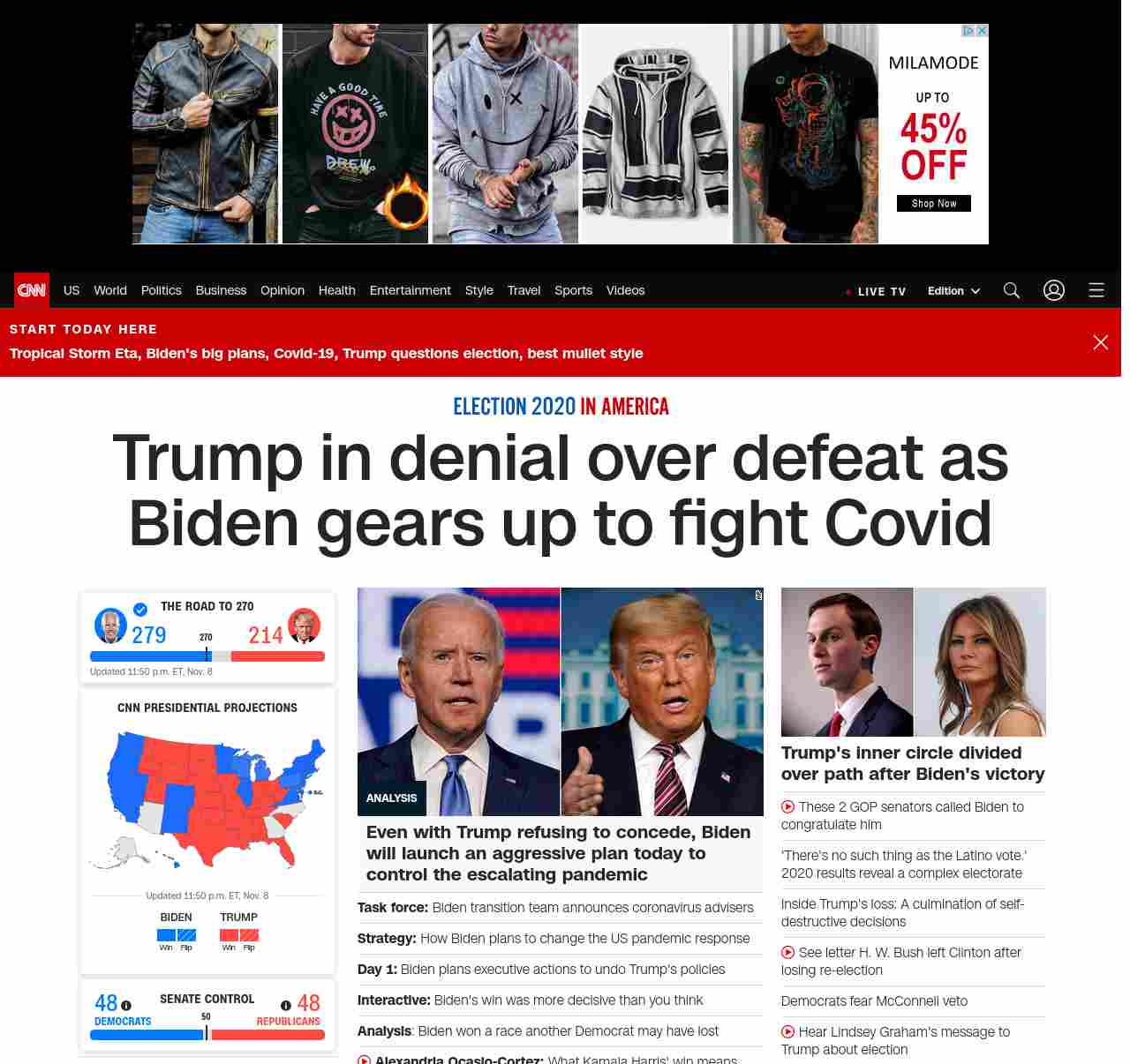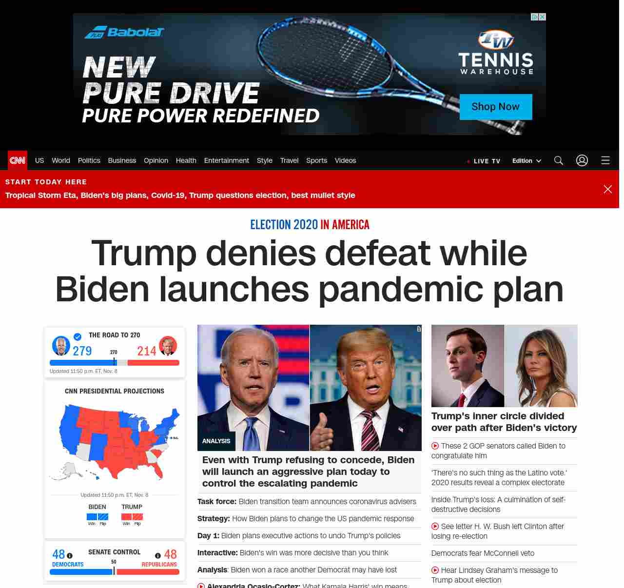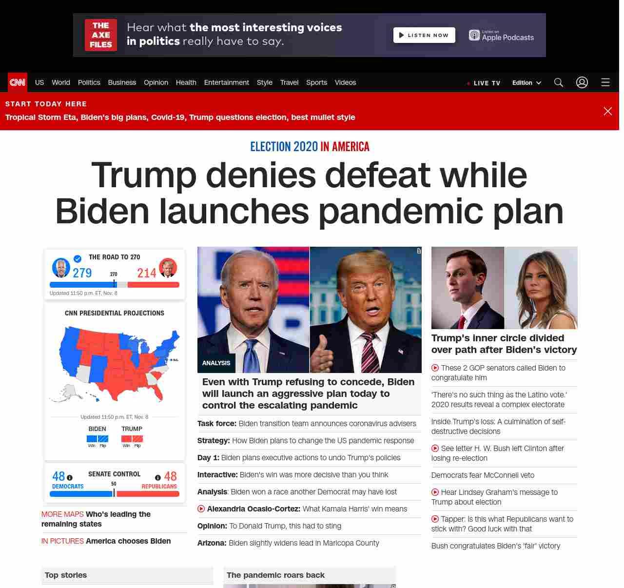 CNN2: subjectpartBANNER=|=”banner-text banner-text–natural”>Trump denies defeat while Biden launches pandemic plan| ((lubuntu at wor3)))