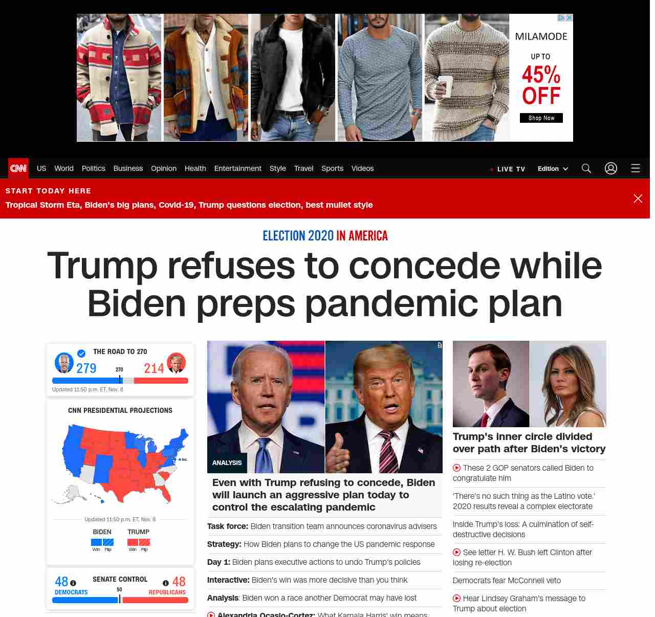 CNN2: subjectpartBANNER=|=”banner-text banner-text–natural”>Trump refuses to concede while Biden preps pandemic plan| ((lubuntu at wor3)))