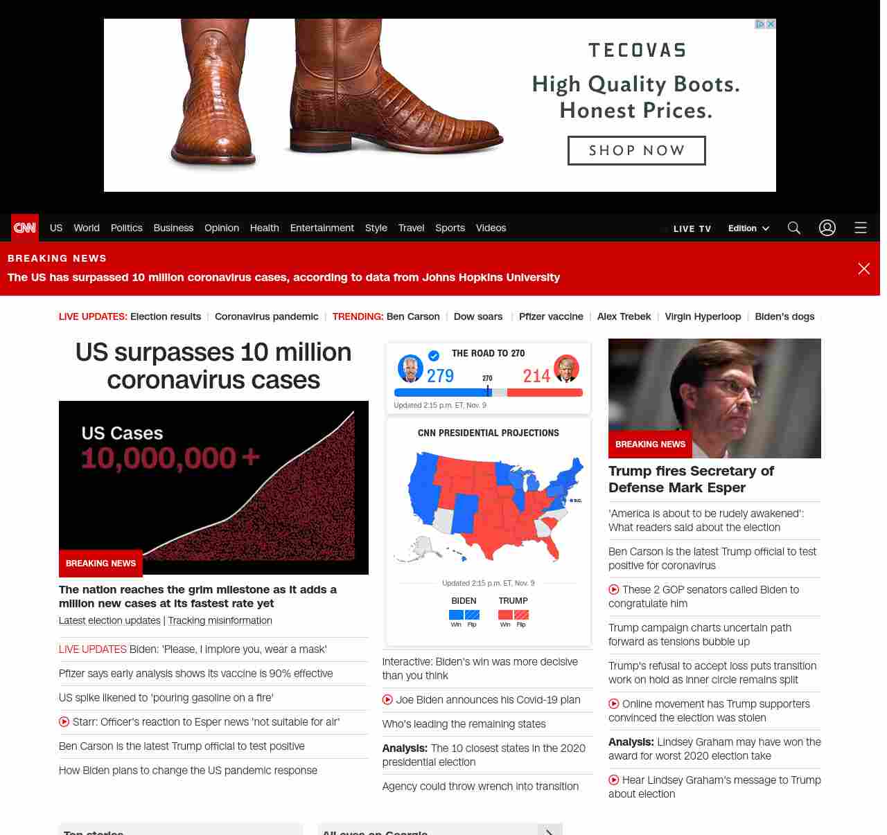 || screaming-banner-text banner-text-size–char-44″ data-analytics=”_list-hierarchical-xs_hyperlink_”> US surpasses 10 million coronavirus cases ||”},”chartbeat”:{“sections”:””},”branding_content_page”:”presidential-debate”,”branding_content_zone”:[“default”],”branding_content_container”:[“default”,”cnn-money-markets”,”space-and-science”,”cnn-heroes-hp”],”branding_content_card”:[“”]} , edition: “domestic” , sourceId: ”
