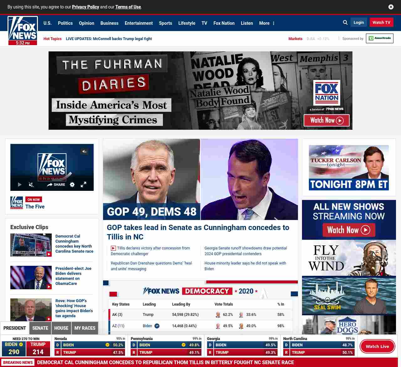 =”https://www.foxnews.com/politics/tillis-victory-north-carolina-senate-cunningham“>GOP takes lead in Senate as Cunningham concedes to Tillis in NC