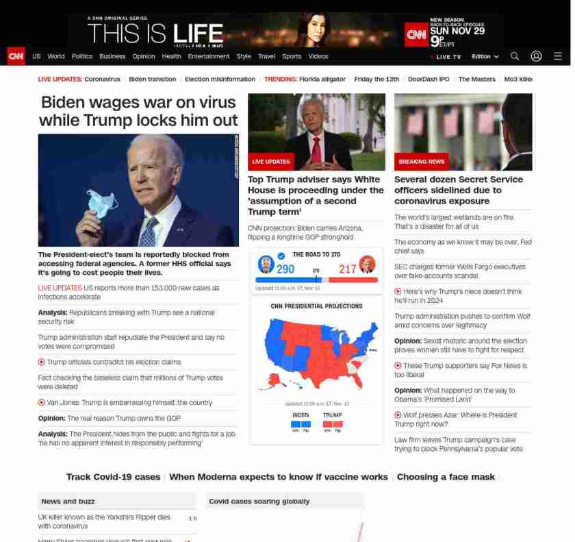 CNN1: FOXVCNN=|Biden wages war on virus while Trump locks him out| ((lubuntu at wor3))
