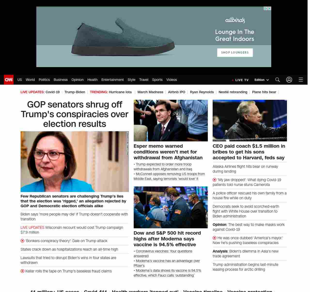 || screaming-banner-text banner-text-size–char-47″ data-analytics=”_list-hierarchical-xs_article_”> GOP senators shrug off Trump’s conspiracies over election results ||”},”chartbeat”:{“sections”:””},”branding_content_page”:”presidential-debate”,”branding_content_zone”:[“default”],”branding_content_container”:[“default”,”cnn-money-markets”,”space-and-science”,”champions-for-change”],”branding_content_card”:[“”]} , edition: “domestic” , sourceId: ”