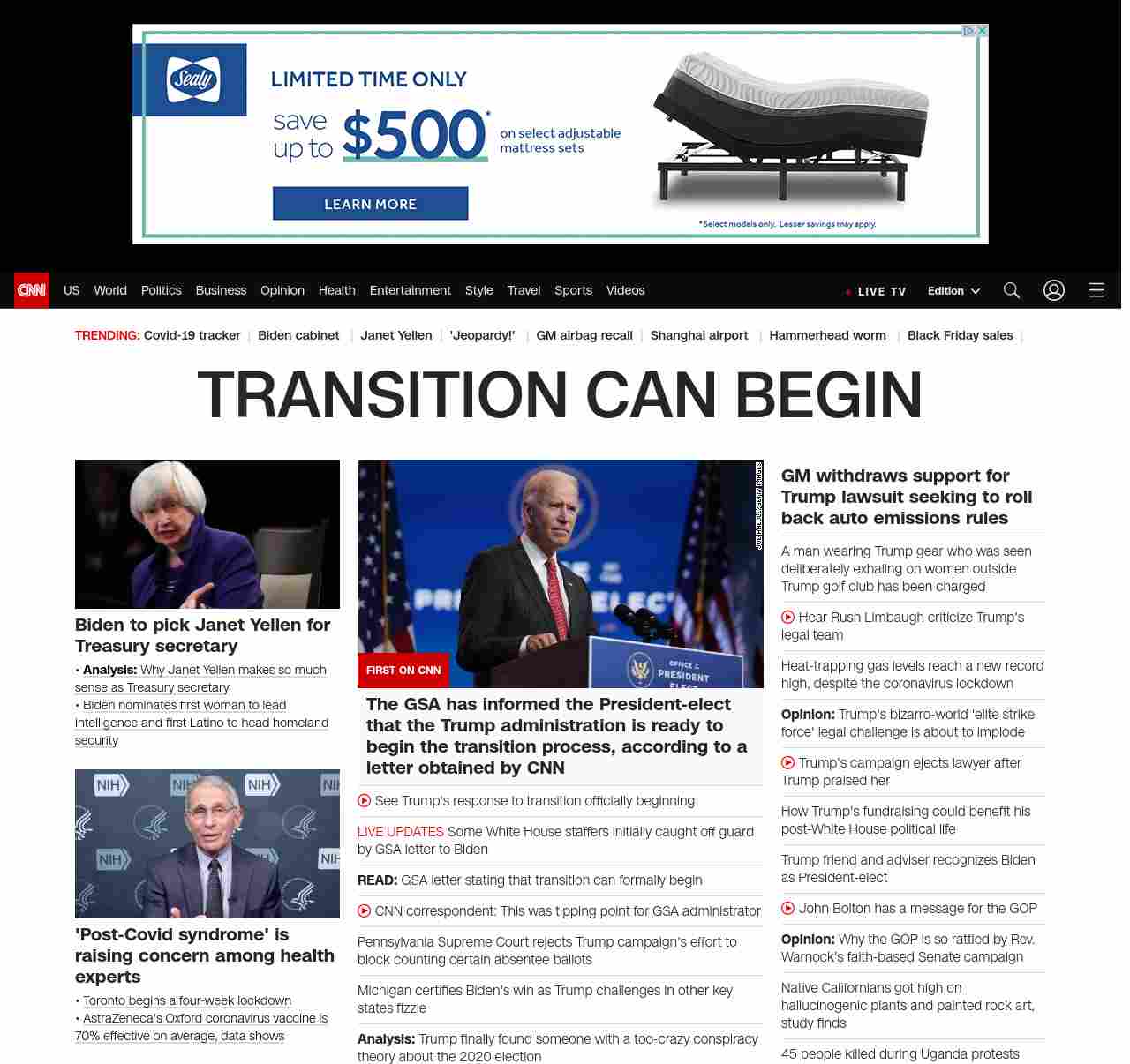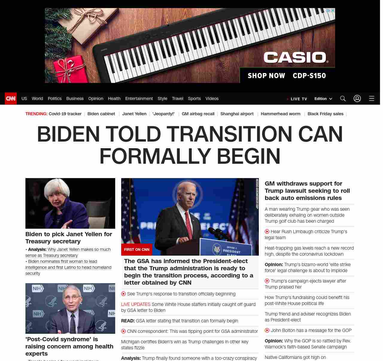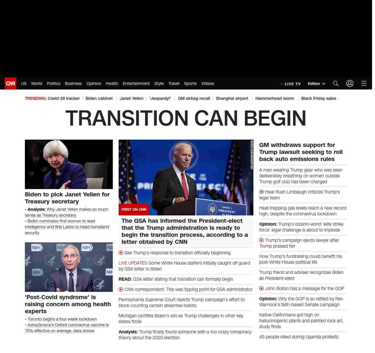 || BIDEN TOLD TRANSITION CAN FORMALLY BEGIN ||”},”chartbeat”:{“sections”:””},”branding_content_page”:”default”,”branding_content_zone”:[“default”],”branding_content_container”:[“default”,”cnn-money-markets”,”space-and-science”,”cnn-heroes-hp”],”branding_content_card”:[“”]} , edition: “domestic” , sourceId: ”