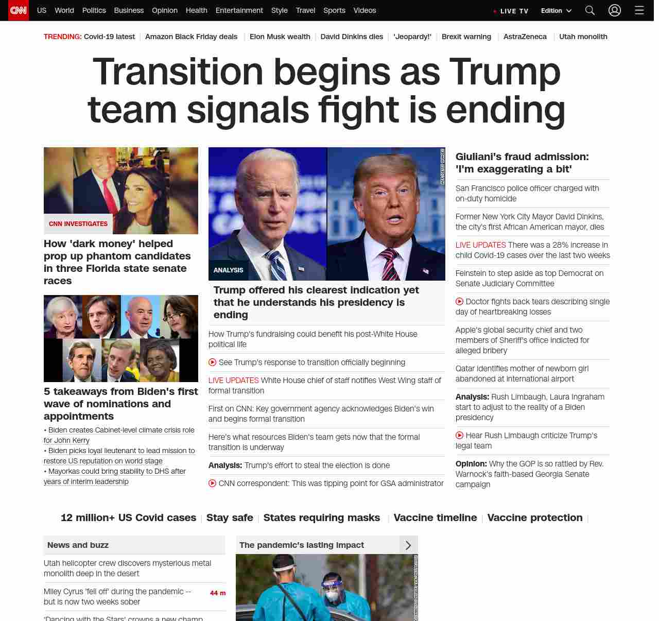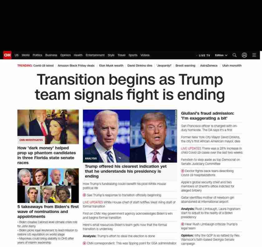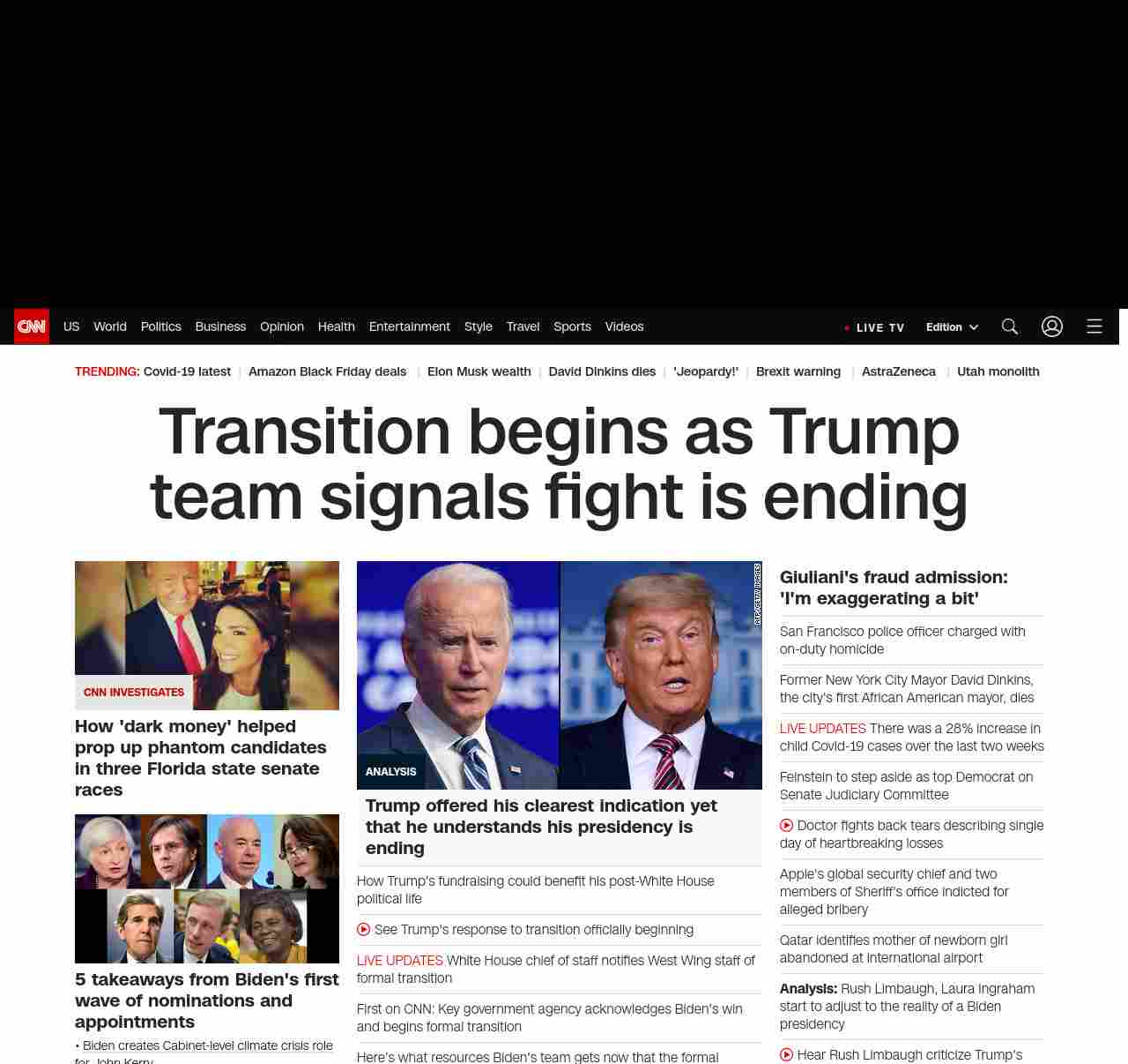 || Transition begins as Trump team signals fight is ending ||”},”chartbeat”:{“sections”:””},”branding_content_page”:”default”,”branding_content_zone”:[“default”],”branding_content_container”:[“default”,”cnn-money-markets”,”space-and-science”,”cnn-heroes-hp”],”branding_content_card”:[“”]} , edition: “domestic” , sourceId: ”