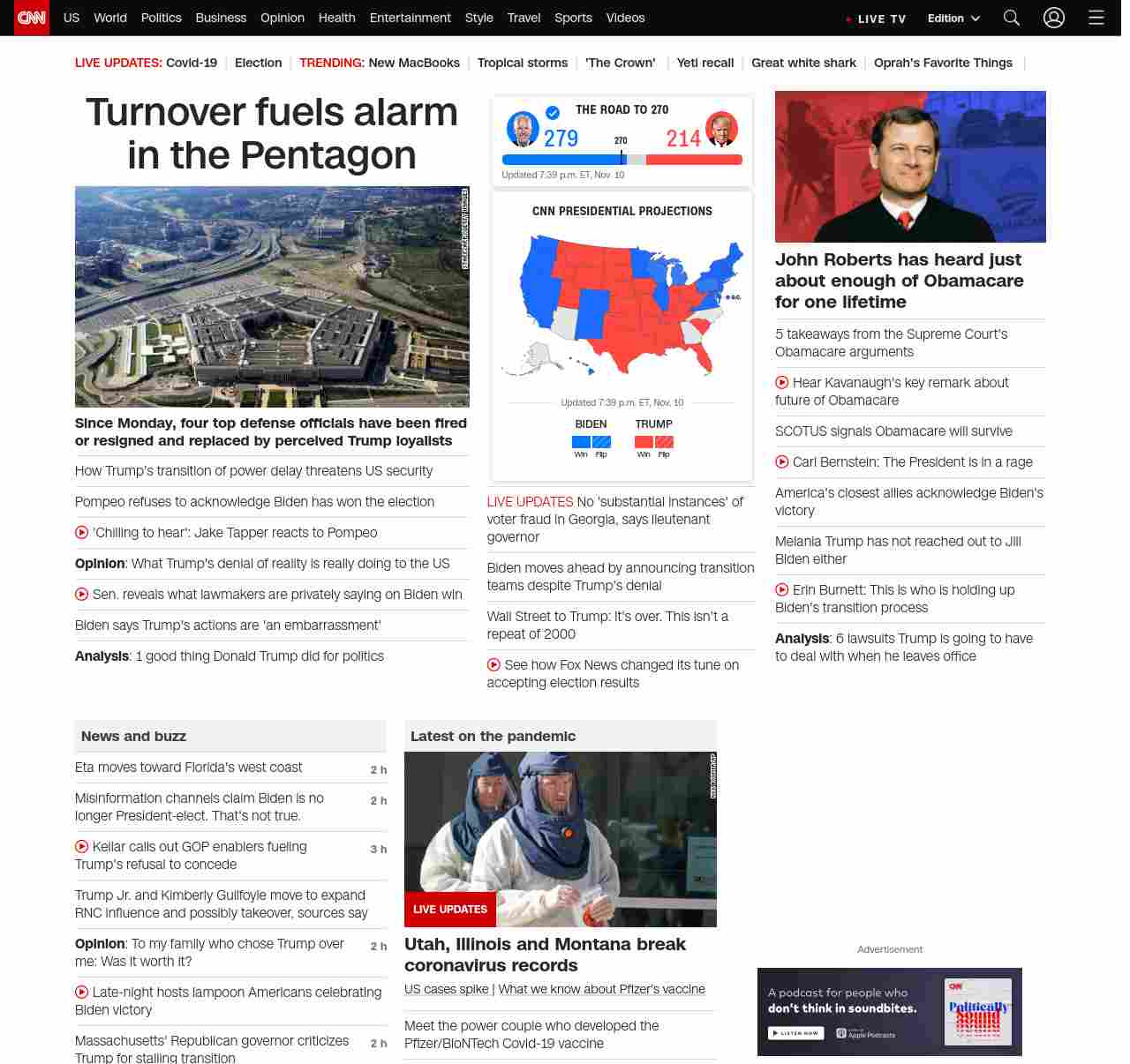 U.S. surpasses 1 million new confirmed coronavirus cases in first 10 days of November
