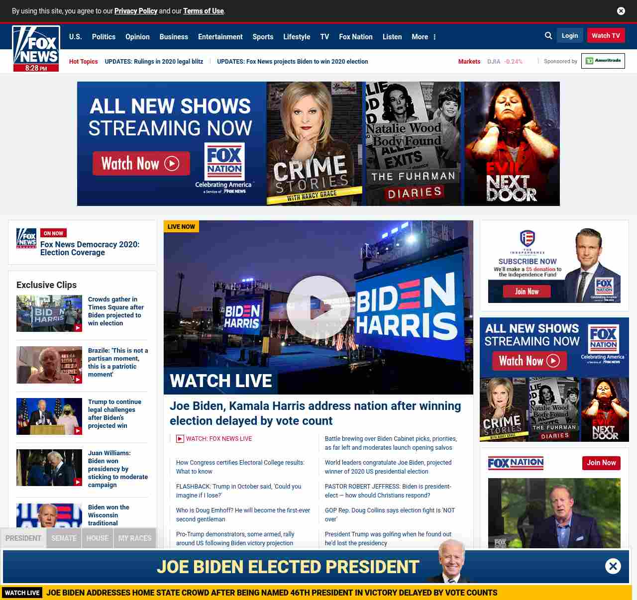 =”https://www.foxnews.com/politics/biden-harris-victory-speech-46th-president-united-states“>Biden to address nation in victory speech from home state after being declared winner of presidential race