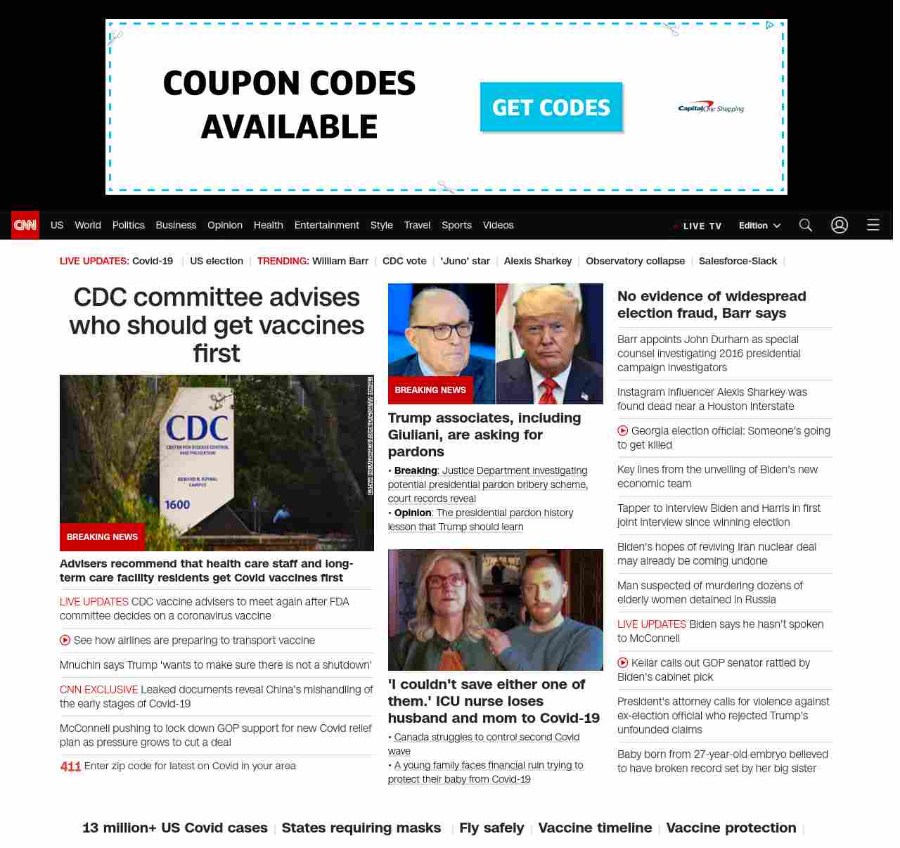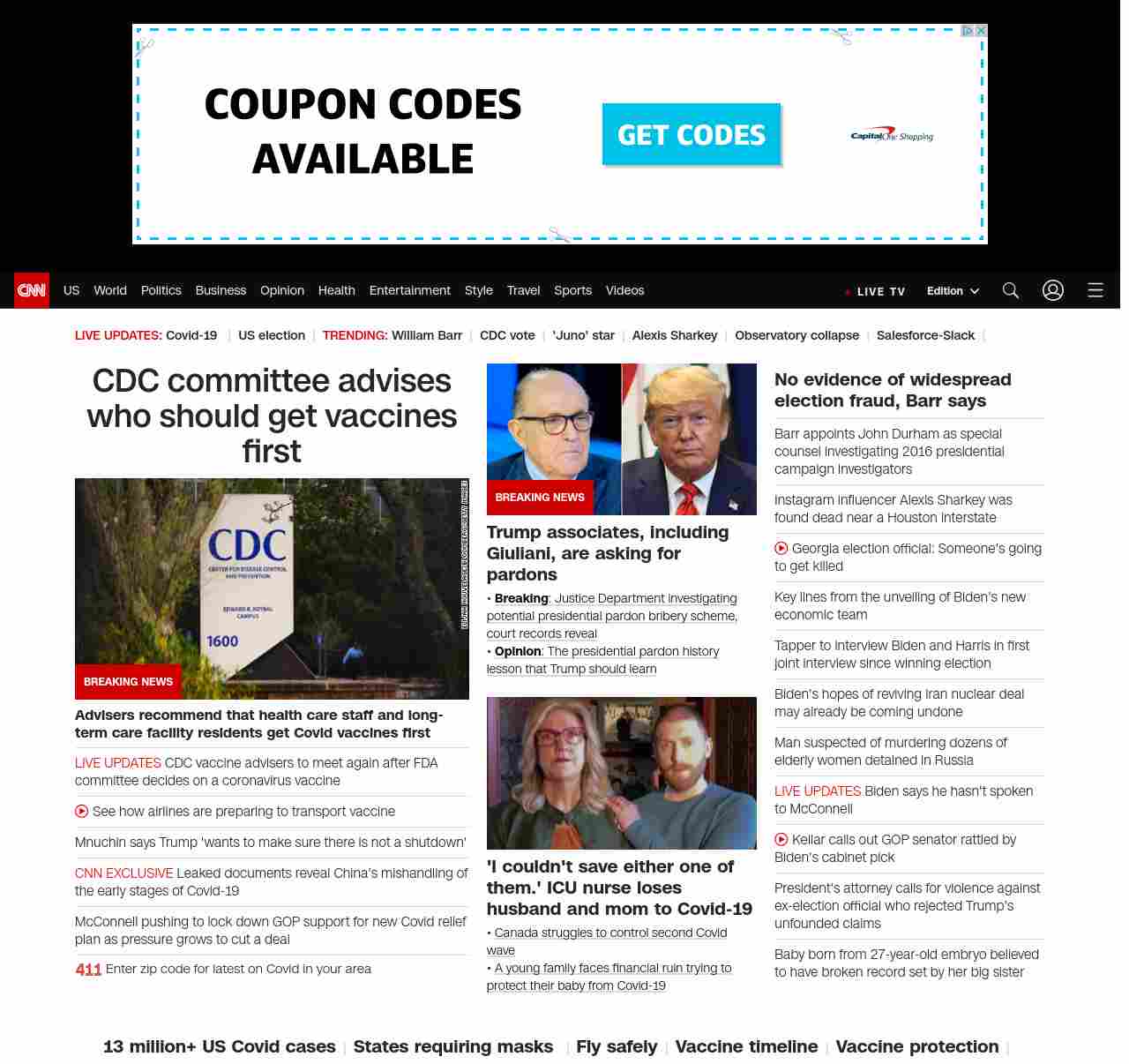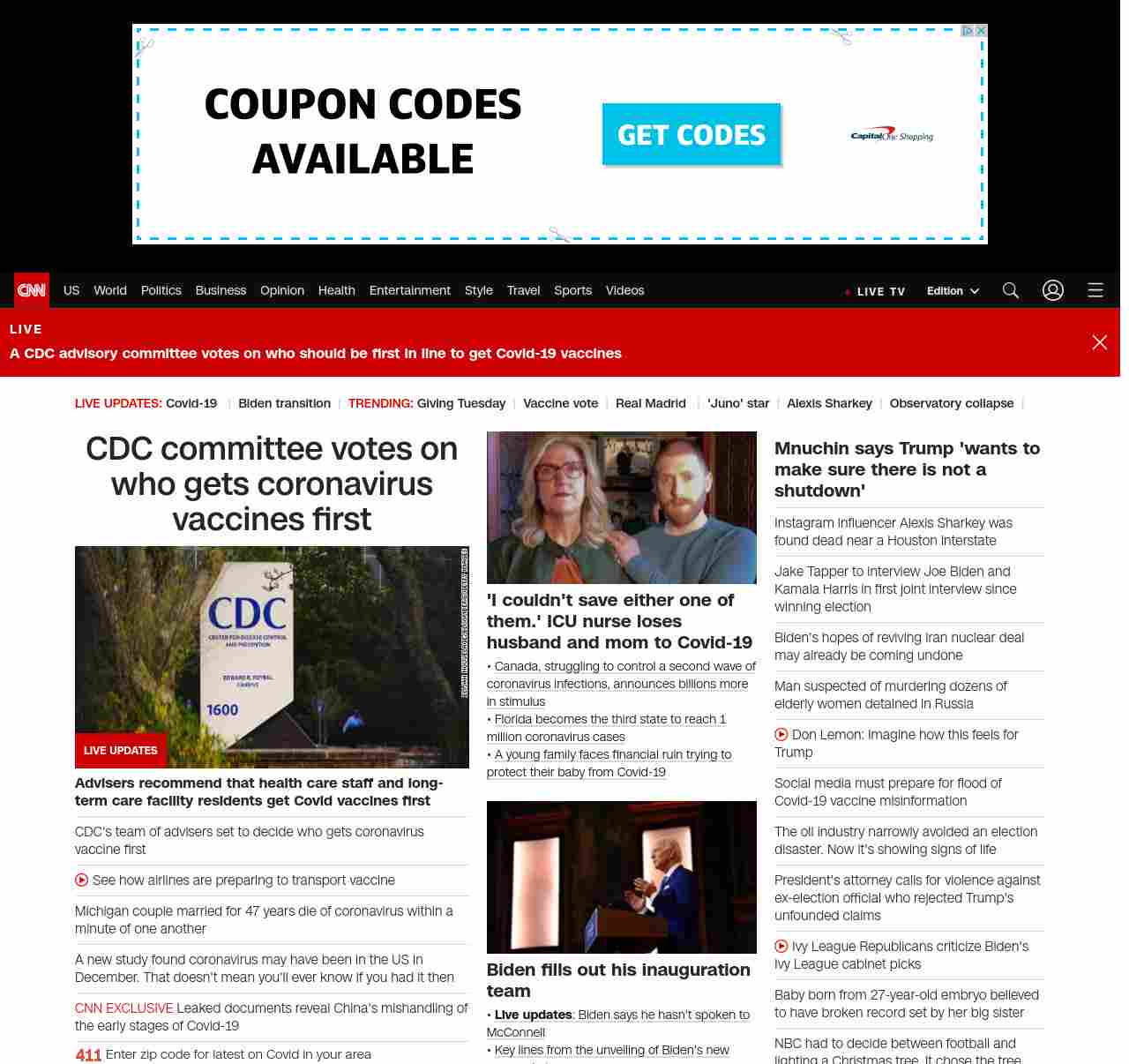 CNN1: FOXVCNN=|CDC committee votes on who gets coronavirus vaccines first| ((lubuntu at wor3))