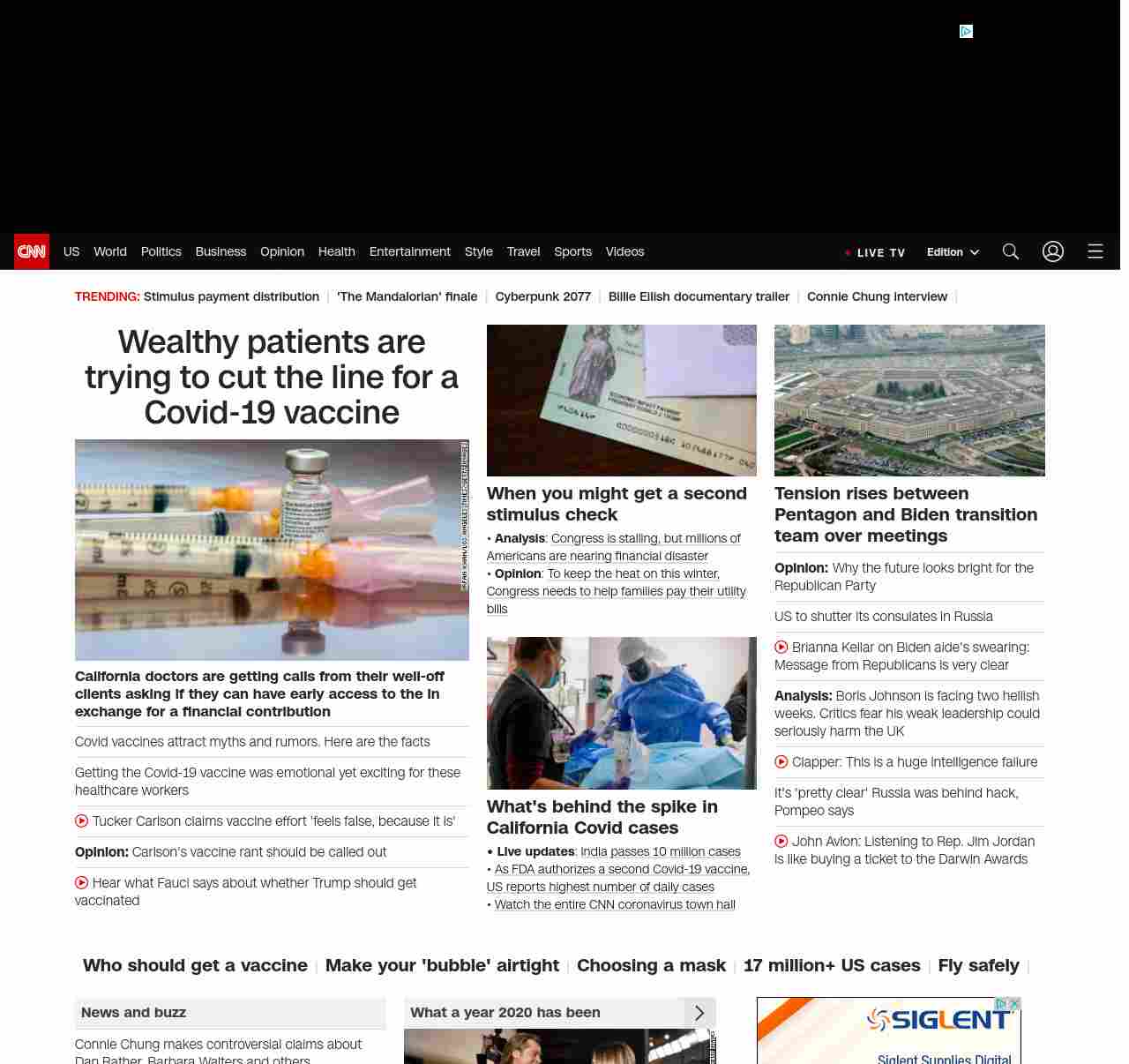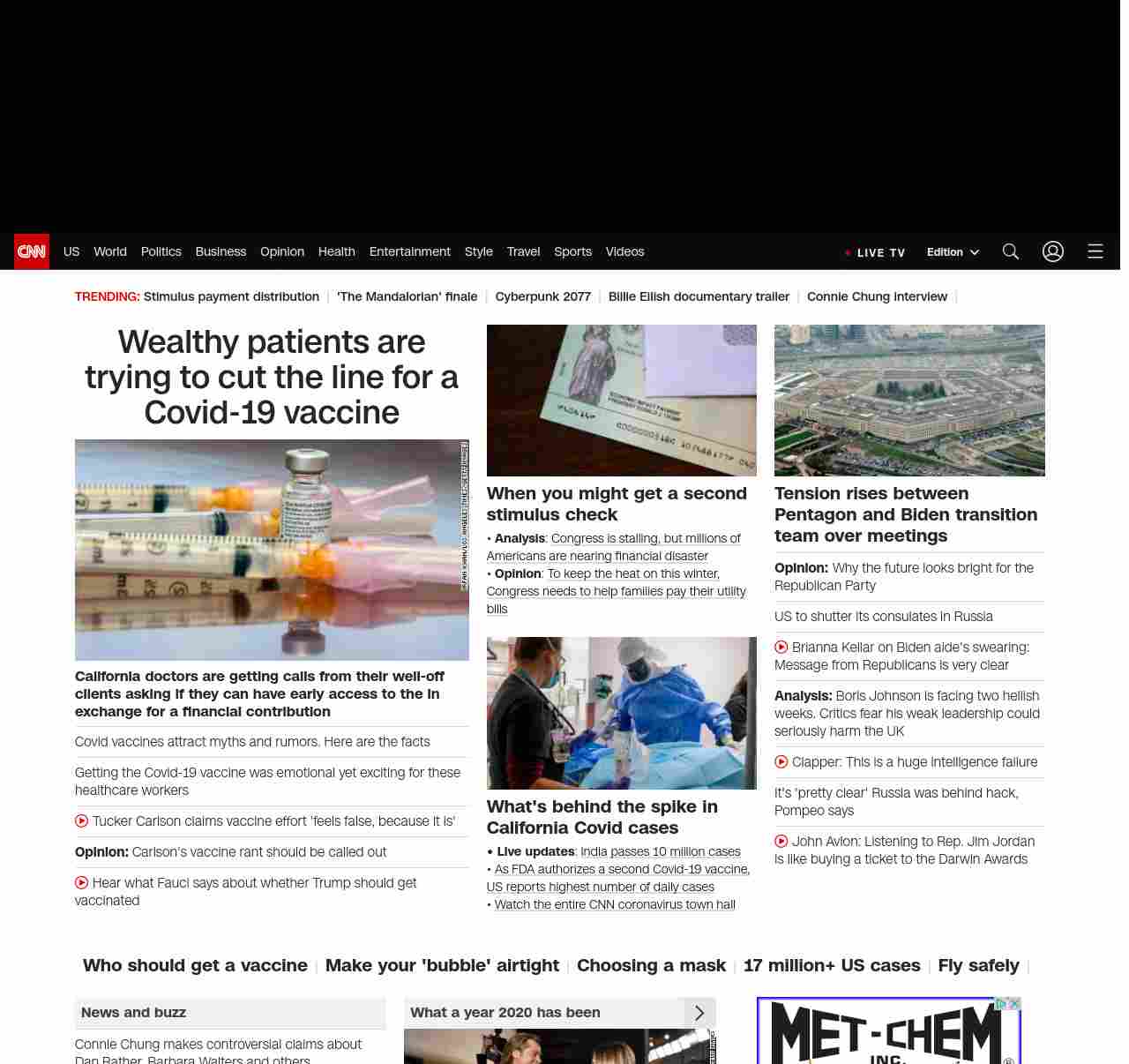 || Wealthy patients are trying to cut the line for a Covid-19 vaccine ||”},”chartbeat”:{“sections”:””},”branding_content_page”:”default”,”branding_content_zone”:[“default”],”branding_content_container”:[“default”,”cnn-money-markets”,”space-and-science”,”cnn-heroes-hp”],”branding_content_card”:[“”]} , edition: “domestic” , sourceId: ”