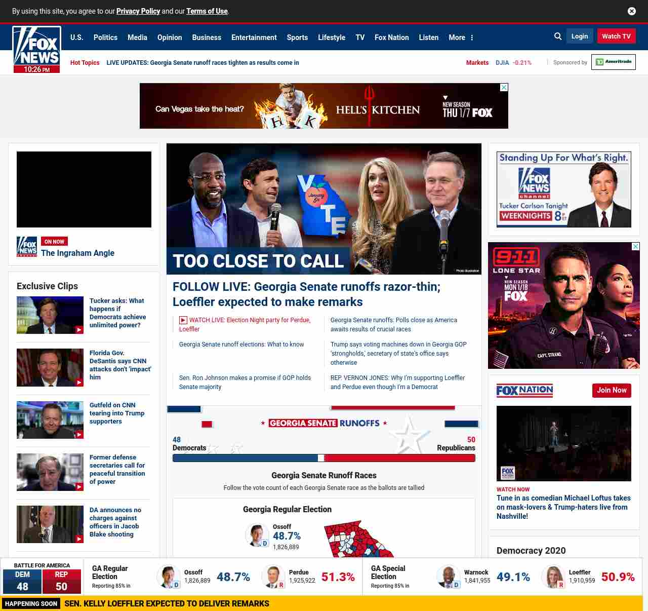 =”http://www.foxnews.com/georgia“>Georgia Senate runoffs razor-thin as votes come in; Loeffler expected to make remarks