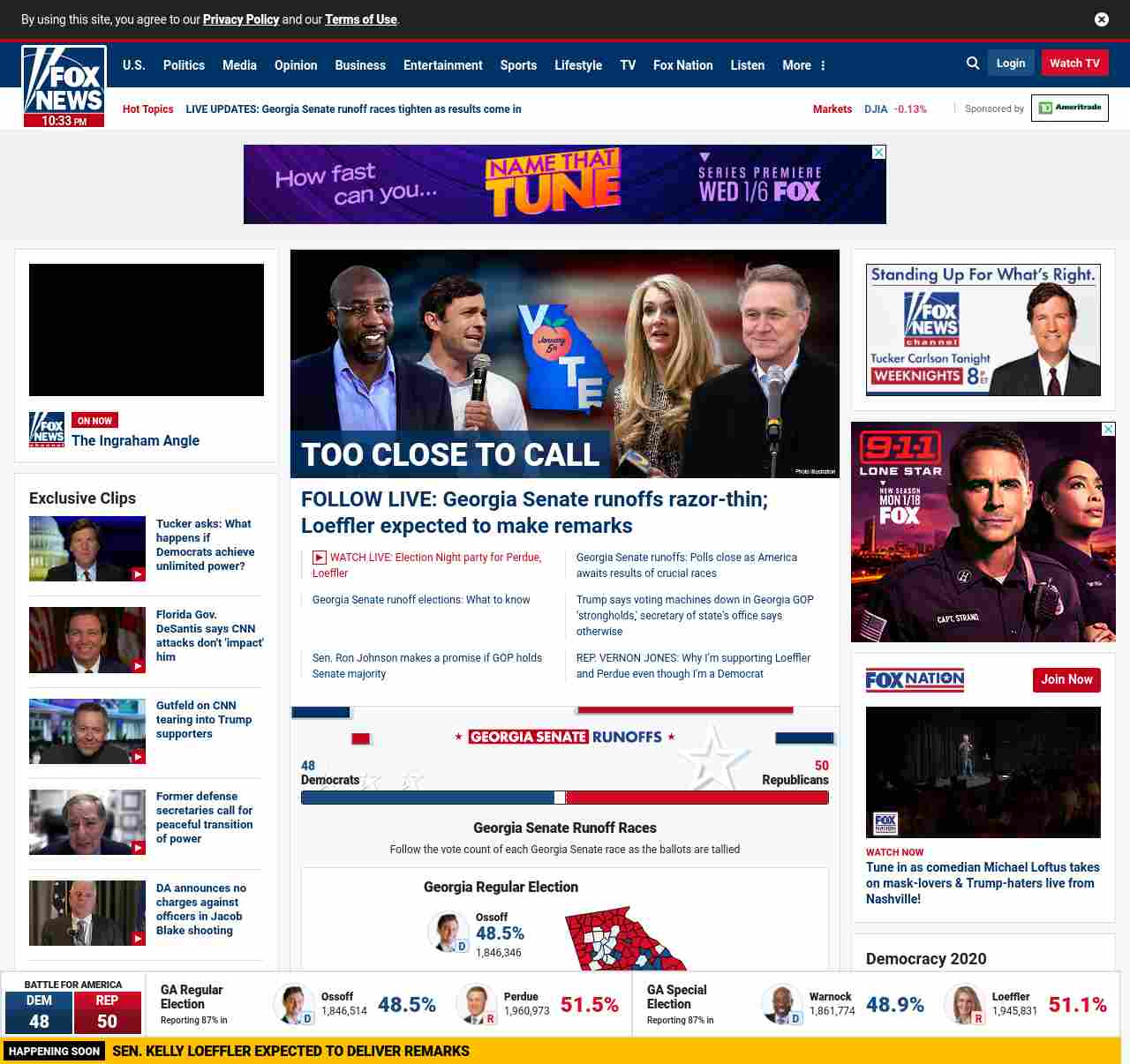 FN: [[TOO CLOSE TO CALL]] Georgia Senate runoffs razor-thin as votes come in; Loeffler expected to make remarks</a ((lubuntu at wor3 89S7))