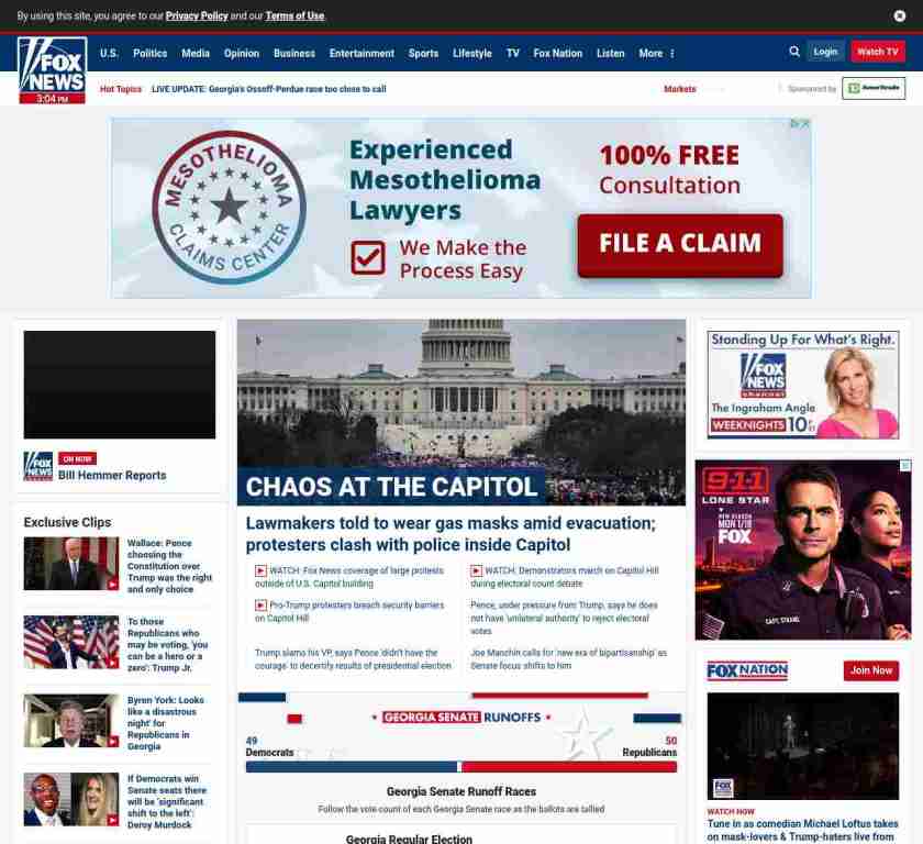=”https://www.foxnews.com/politics/live-updates-pence-has-power-to-block-certification-trump-says“>Lawmakers told to wear gas masks amid evacuation; protesters clash with police inside Capitol