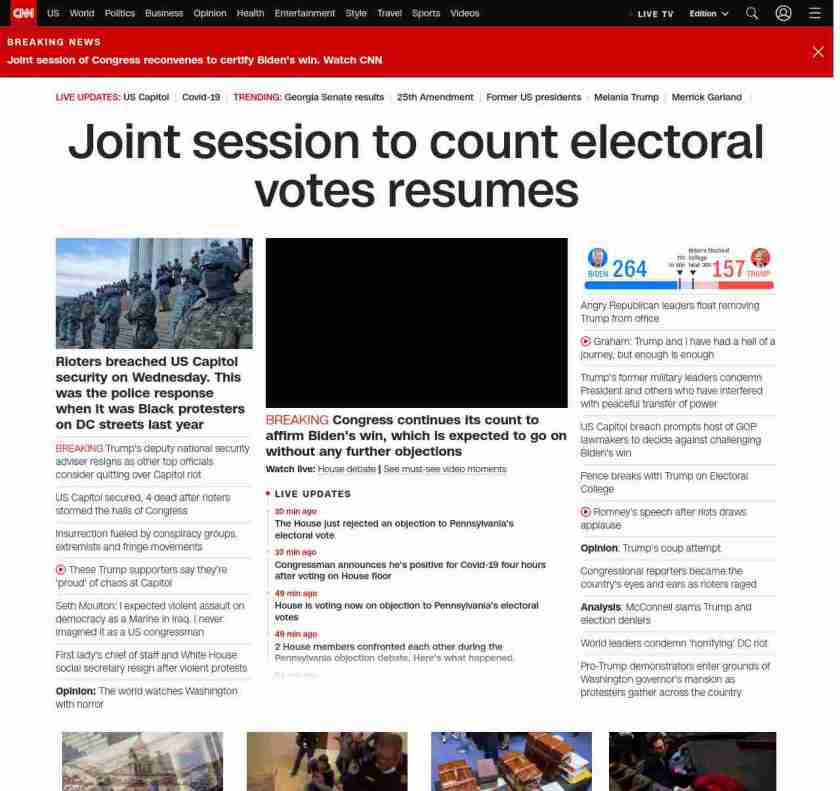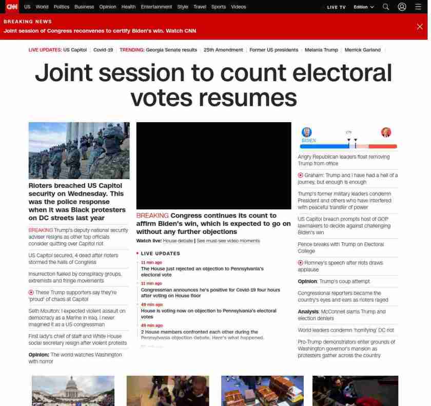 CNN1: FOXVCNN=|Joint session to count electoral votes resumes| ((lubuntu at wor3 89S7))