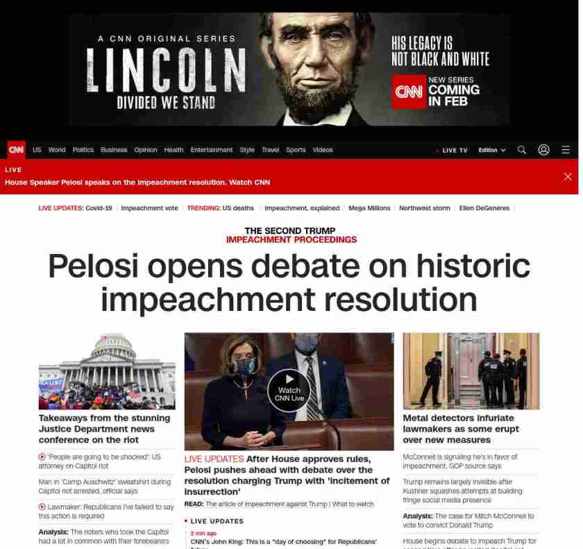 CNN1: FOXVCNN=|Pelosi opens debate on historic impeachment resolution| ((lubuntu at wor3 89S7)) || Pelosi opens debate on historic impeachment resolution ||Pelosi opens debate on historic impeachment resolution Share this: Share on X (Opens in new window) X Share on Facebook (Opens in new window) Facebook Like Loading... Related