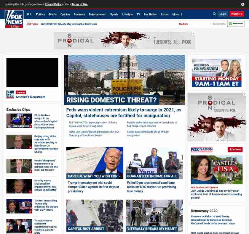 =”https://www.foxnews.com/us/law-enforcement-bulletin-feds-violent-extremism-terror-threat“>Feds warn violent extremism likely to surge in 2021, as Capitol, statehouses are fortified for inauguration