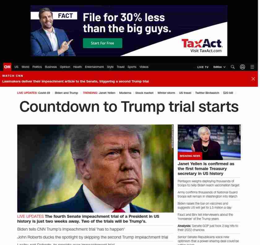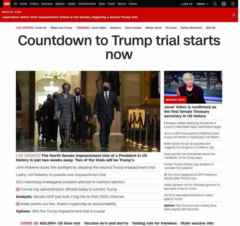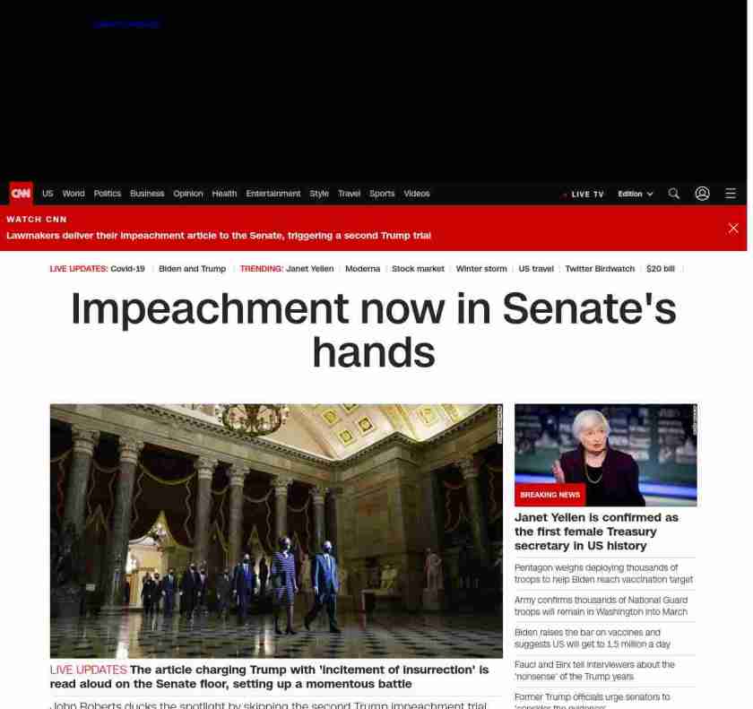nprnews_____ = ||| lubuntu at wor3 89S7|||House Transmits Article Of Impeachment Against Trump To Senate||| kickerpage = |||no kicker pagenpr for NPRNEWS||| summarynpr = |||The trial itself will begin on Feb. 9, giving the Democratic House impeachment managers and Trump’s defense team two weeks to file briefs and finalize their legal preparations.