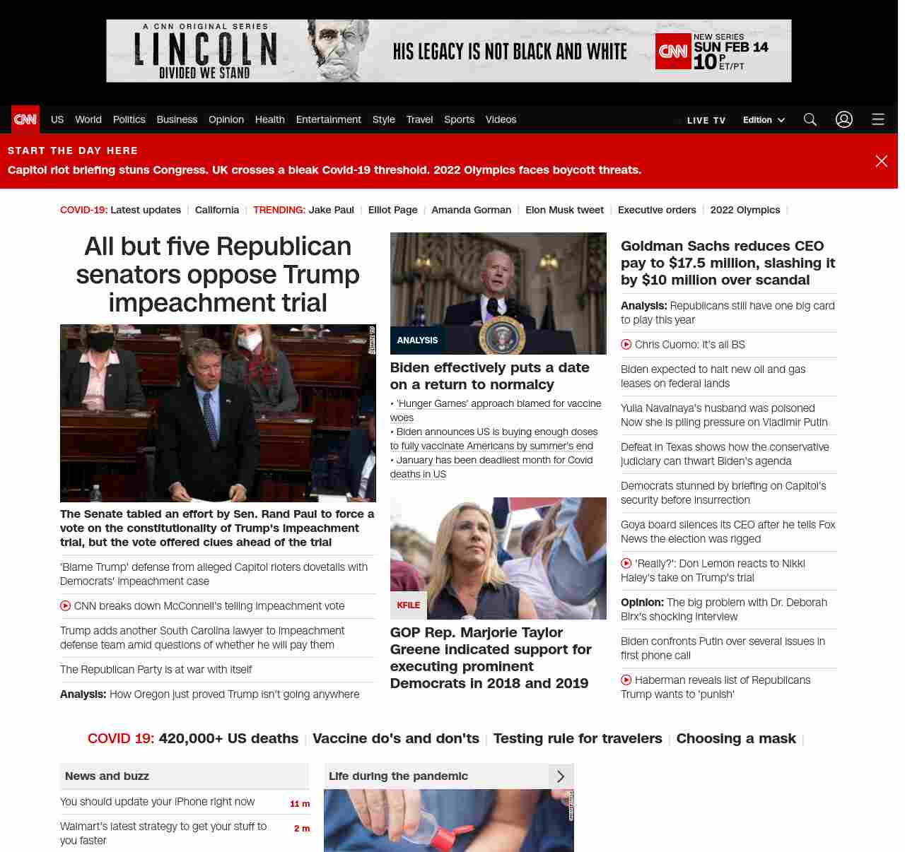 || All but five Republican senators oppose Trump impeachment trial ||”},”chartbeat”:{“sections”:””},”branding_content_page”:”election-day”,”branding_content_zone”:[“default”],”branding_content_container”:[“default”,”cnn-money-markets”,”space-and-science”],”branding_content_card”:[“”,”default”]} , edition: “domestic” , sourceId: ”