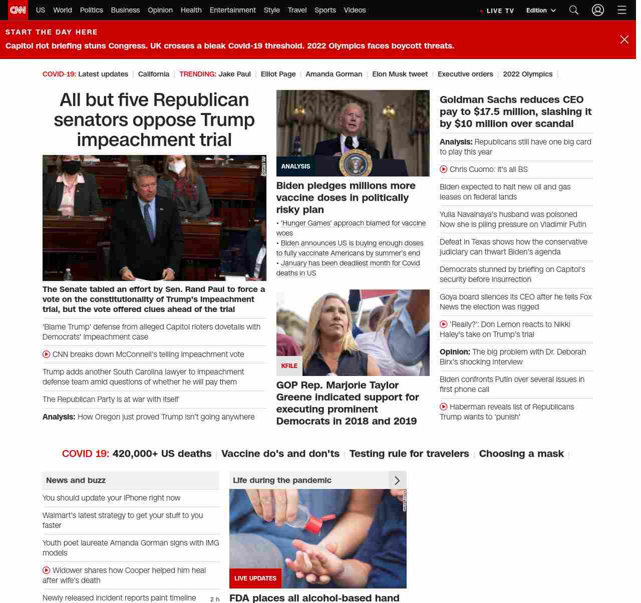 || All but five Republican senators oppose Trump impeachment trial ||”},”chartbeat”:{“sections”:””},”branding_content_page”:”election-day”,”branding_content_zone”:[“default”],”branding_content_container”:[“default”,”cnn-money-markets”,”space-and-science”],”branding_content_card”:[“”,”default”]} , edition: “domestic” , sourceId: ”