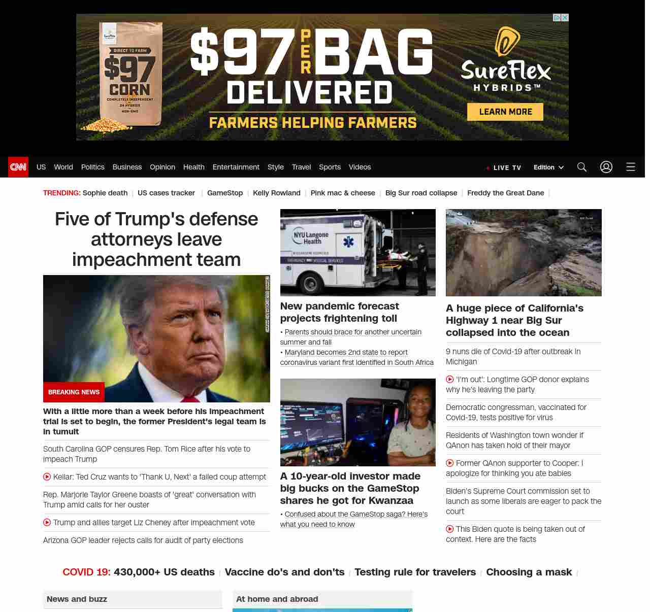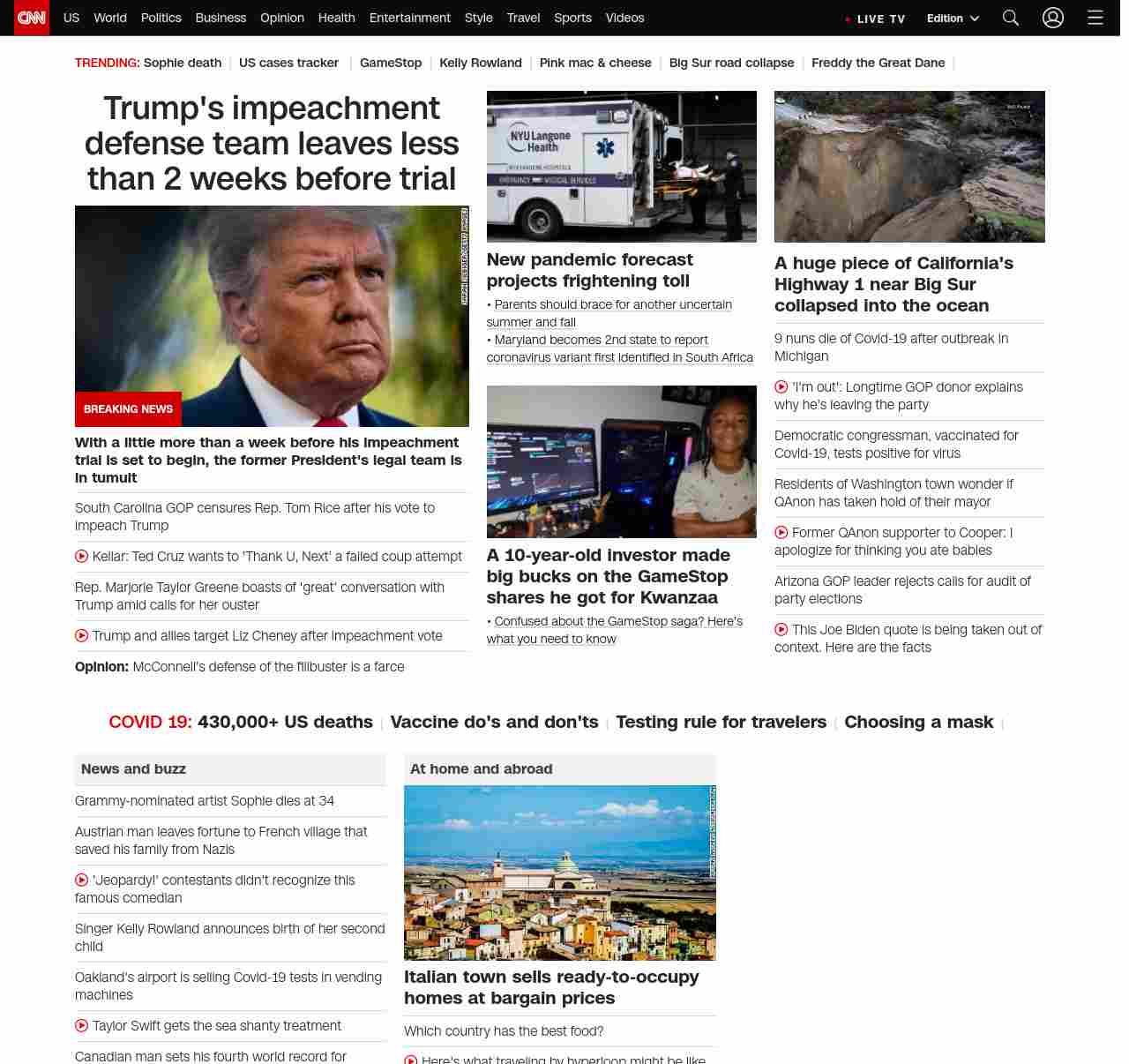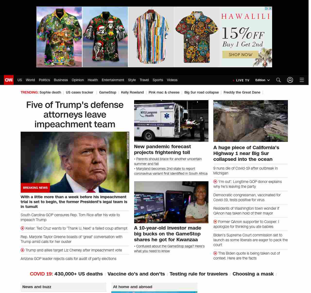 || Five of Trump’s defense attorneys leave impeachment team ||”},”chartbeat”:{“sections”:””},”branding_content_page”:”election-day”,”branding_content_zone”:[“default”],”branding_content_container”:[“default”,”cnn-money-markets”,”space-and-science”],”branding_content_card”:[“”,”default”]} , edition: “domestic” , sourceId: ”